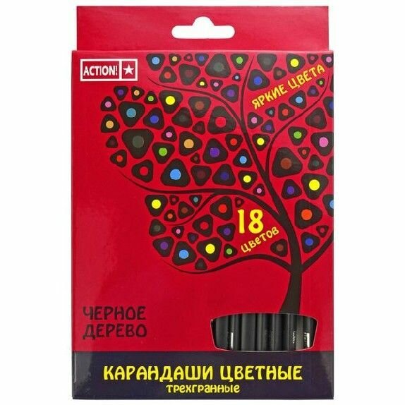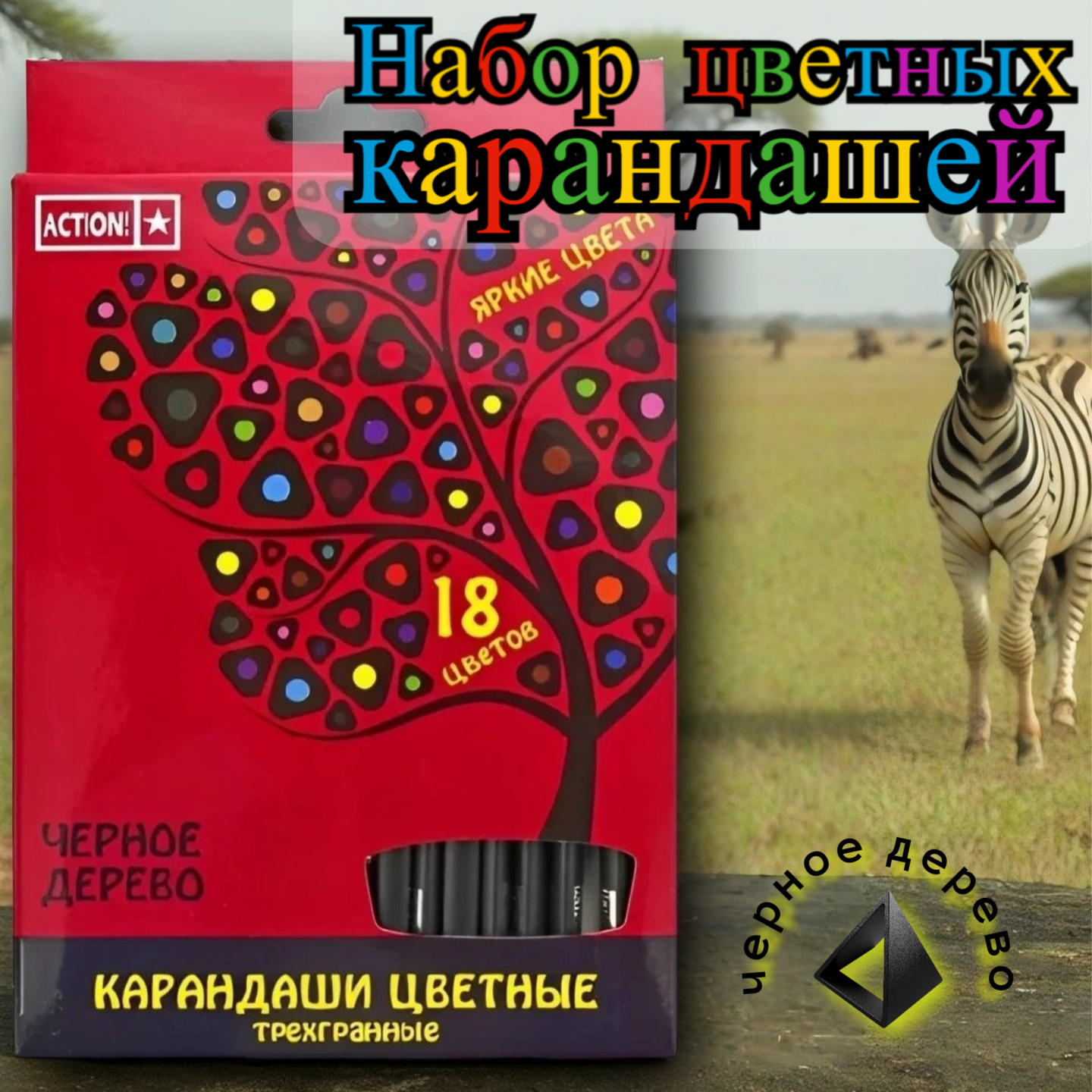 Набор карандашей цветных для рисования. 18 цветов. Черное дерево. Action! интересное:
