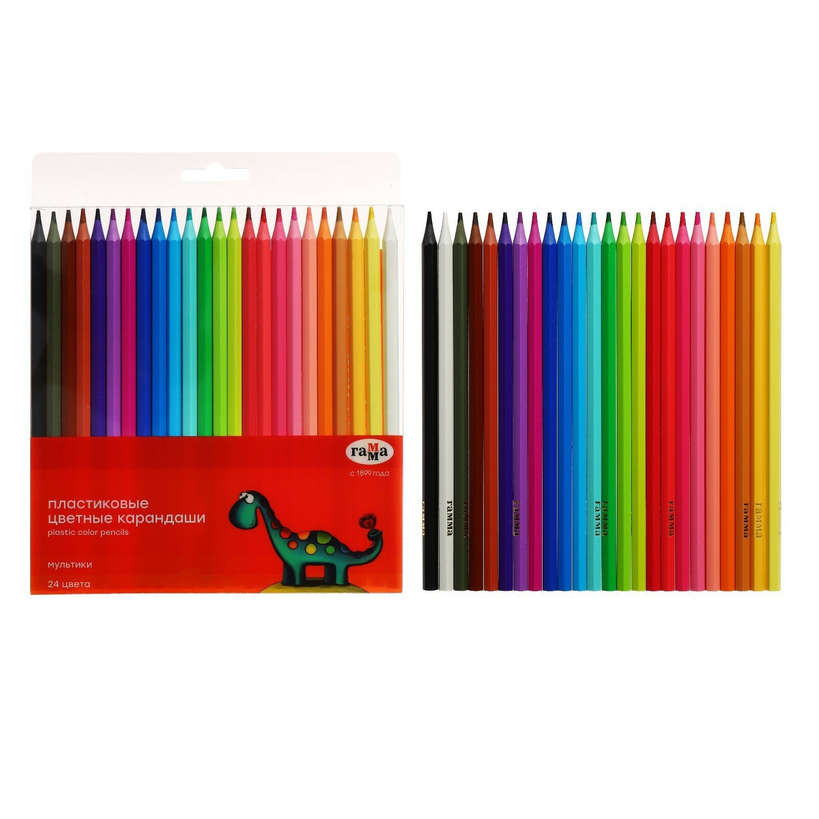 Купить Цветные карандаши для школы 24 цвета, пластиковые шестигранные / Набор цветных карандашей для рисования школьный Гамма "Мультики"