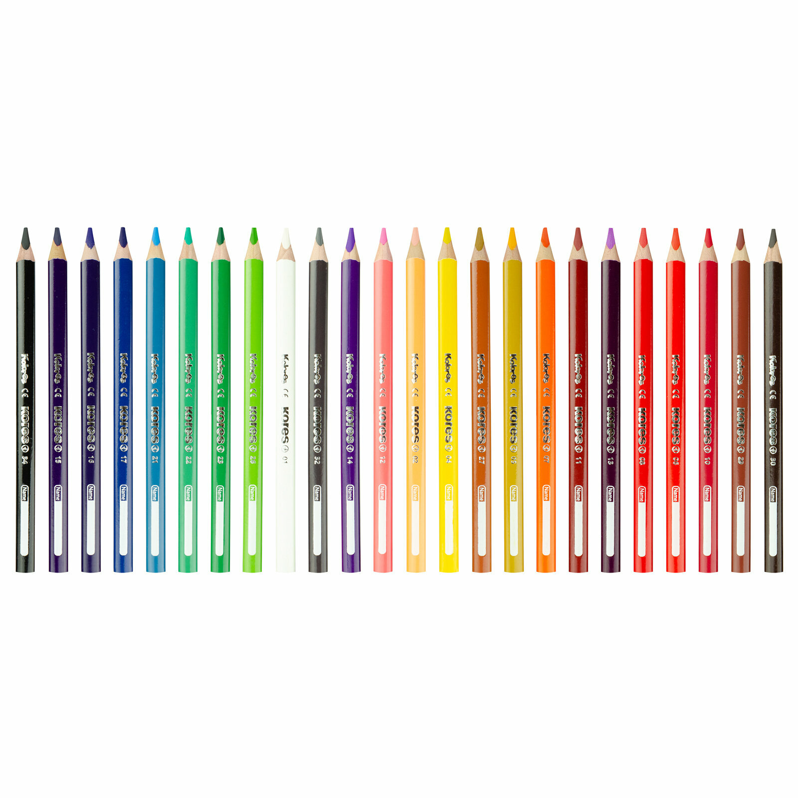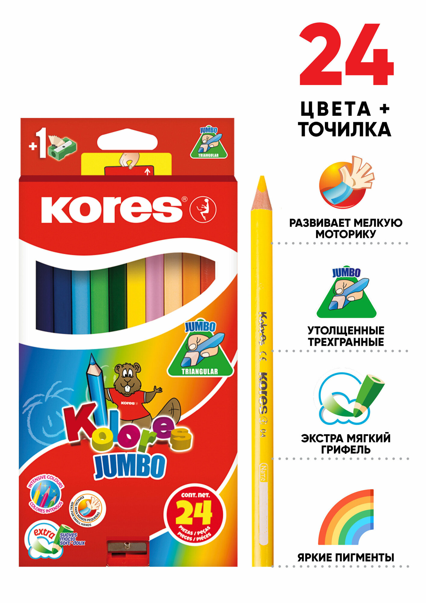 Купить Карандаши цветные Kores, трехгранные, толщина грифеля 5 мм, набор 24 цвета, с точилкой
