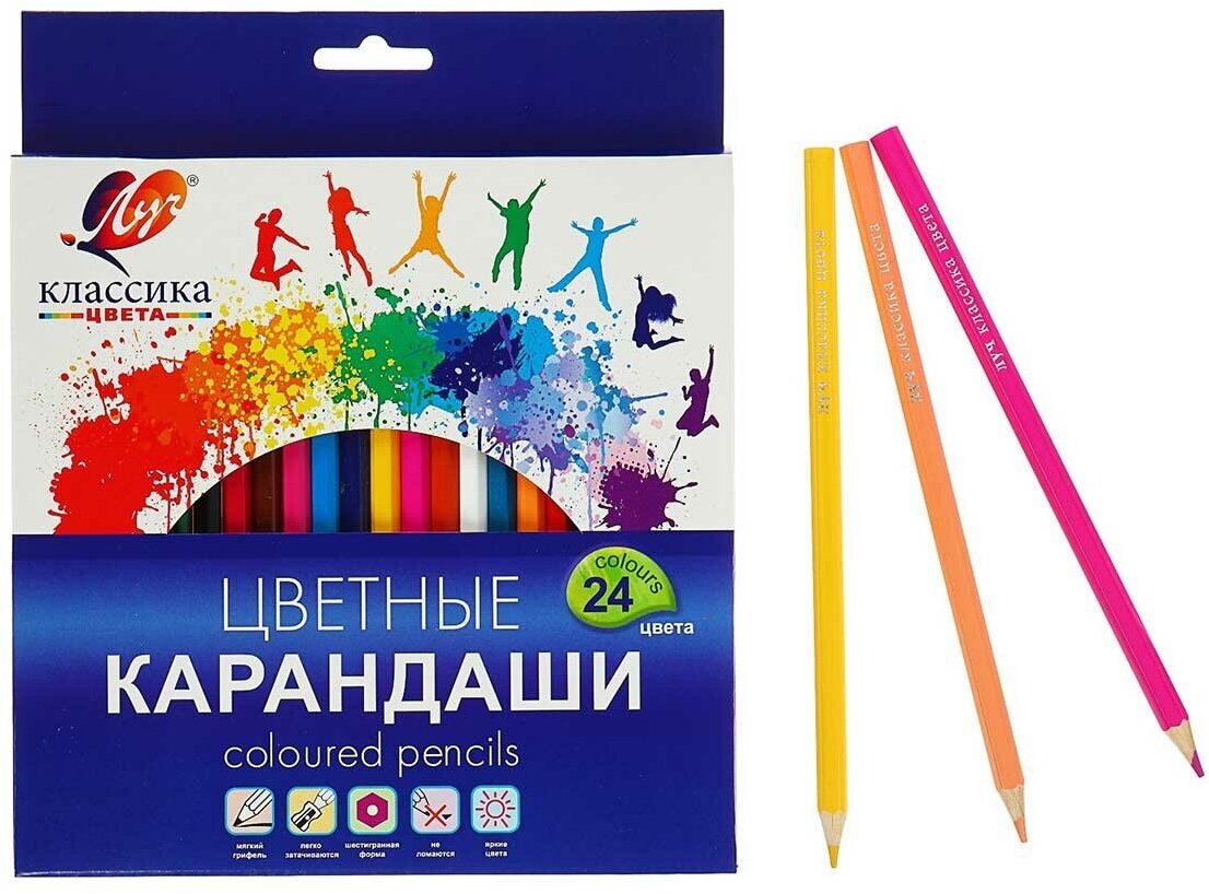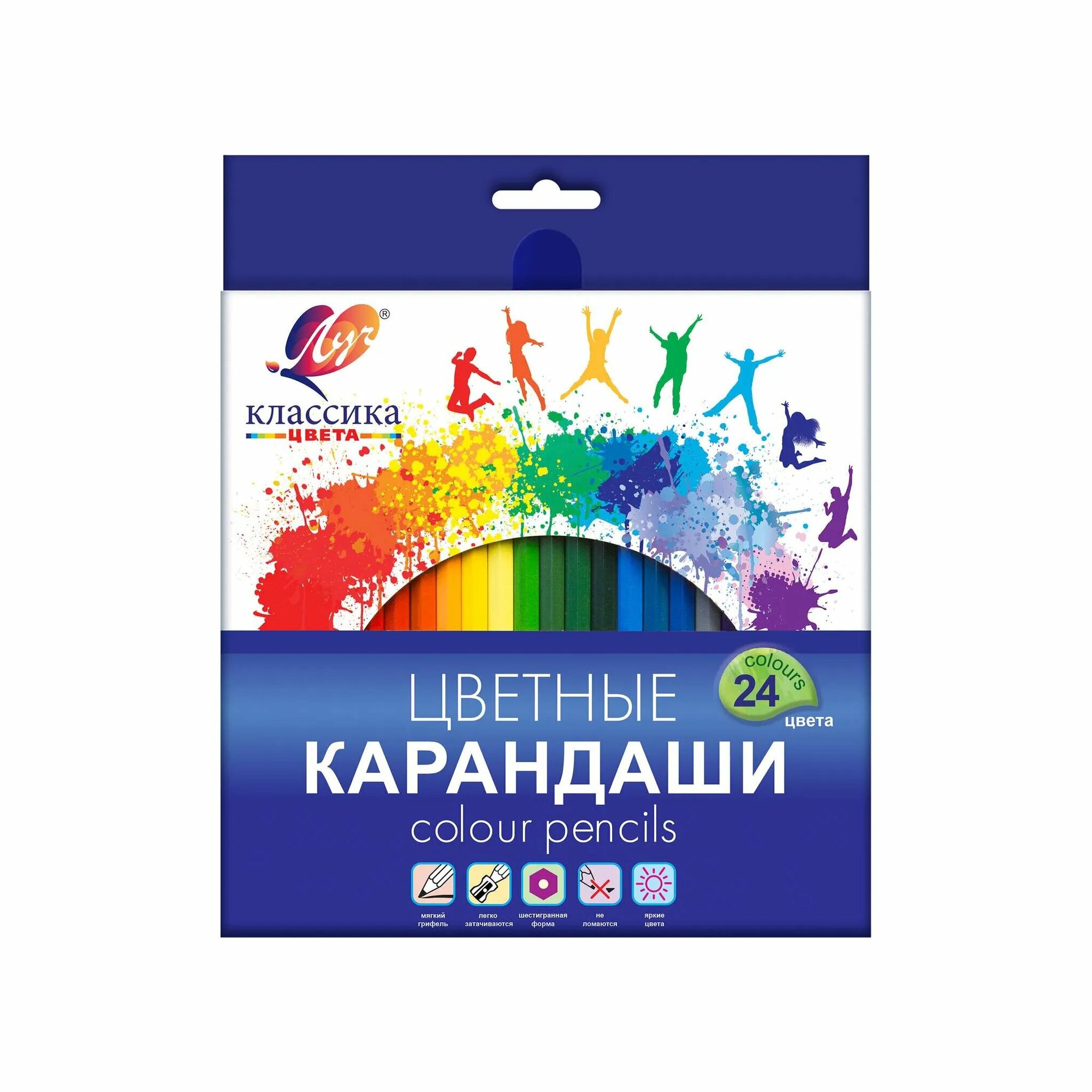 Купить Карандаши цветные Луч "Классика", 24 цвета, заточенные, шестигранные, картонная упаковка, 29С 1712-08