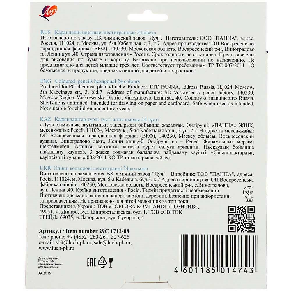 Карандаши цветные Луч "Классика", 24 цвета, заточенные, шестигранные, картонная упаковка, 29С 1712-08 интересное: