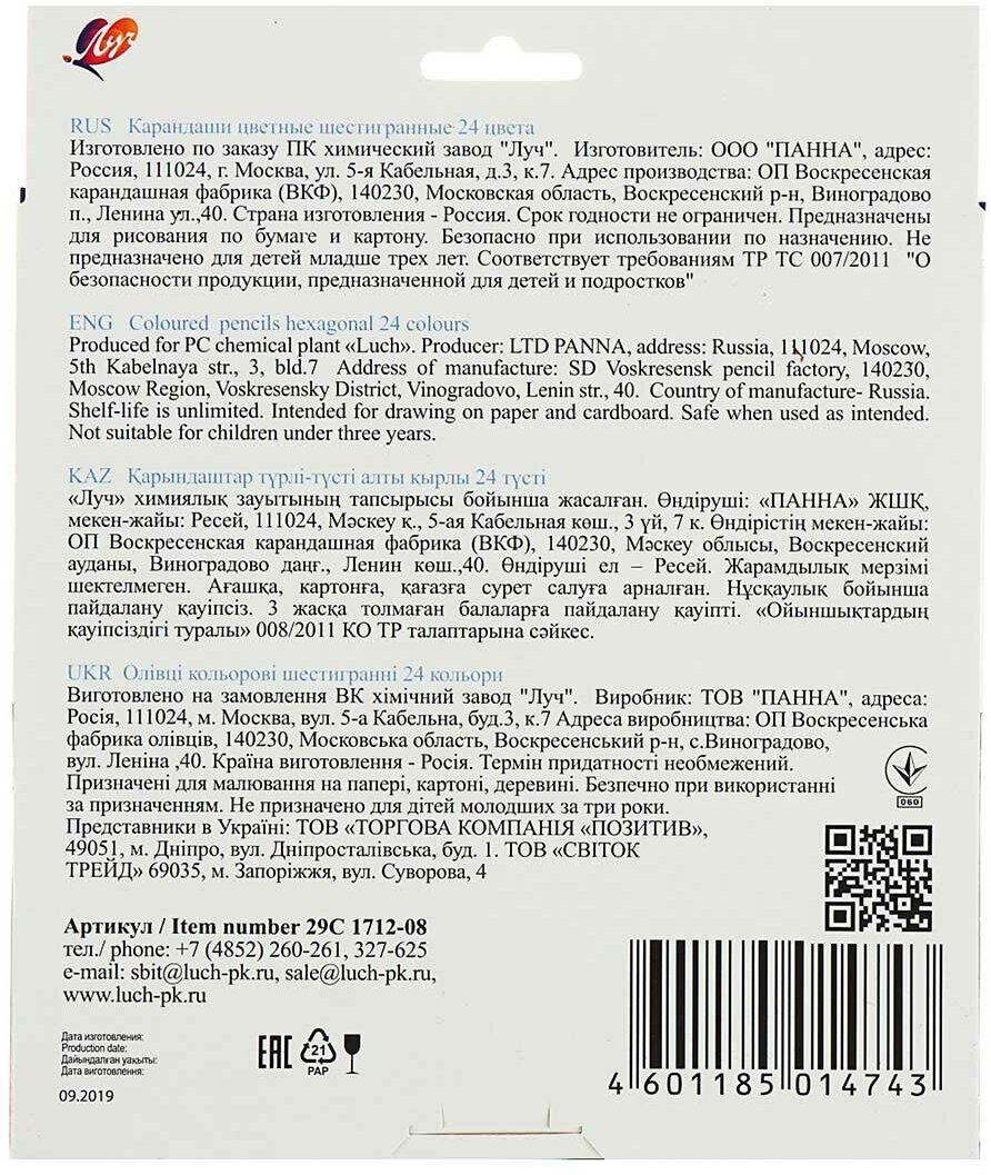 Ниже Вы можете прочитать отзывы на Карандаши цветные Луч "Классика", 24 цвета, заточенные, шестигранные, картонная упаковка, 29С 1712-08, ознакомится с подробными характеристиками, посмотреть интересные обзоры и фотографии на Карандаши цветные Луч "Классика", 24 цвета, заточенные, шестигранные, картонная упаковка, 29С 1712-08.