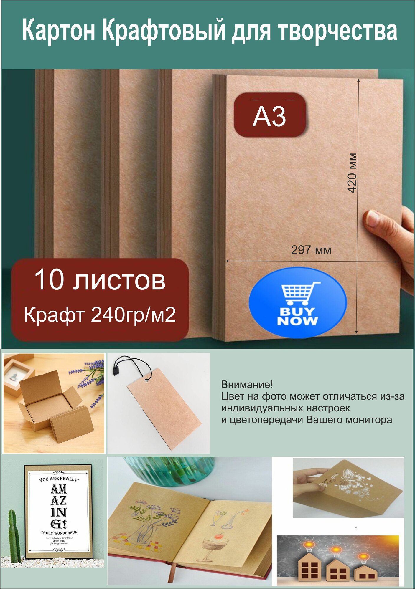 Ниже Вы можете прочитать отзывы на Картон крафтовый для творчества. Картон для скрапбукинга. Формат А3. 10 листов., ознакомится с подробными характеристиками, посмотреть интересные обзоры и фотографии на Картон крафтовый для творчества. Картон для скрапбукинга. Формат А3. 10 листов..