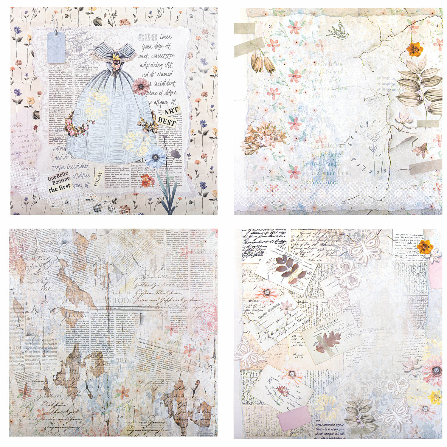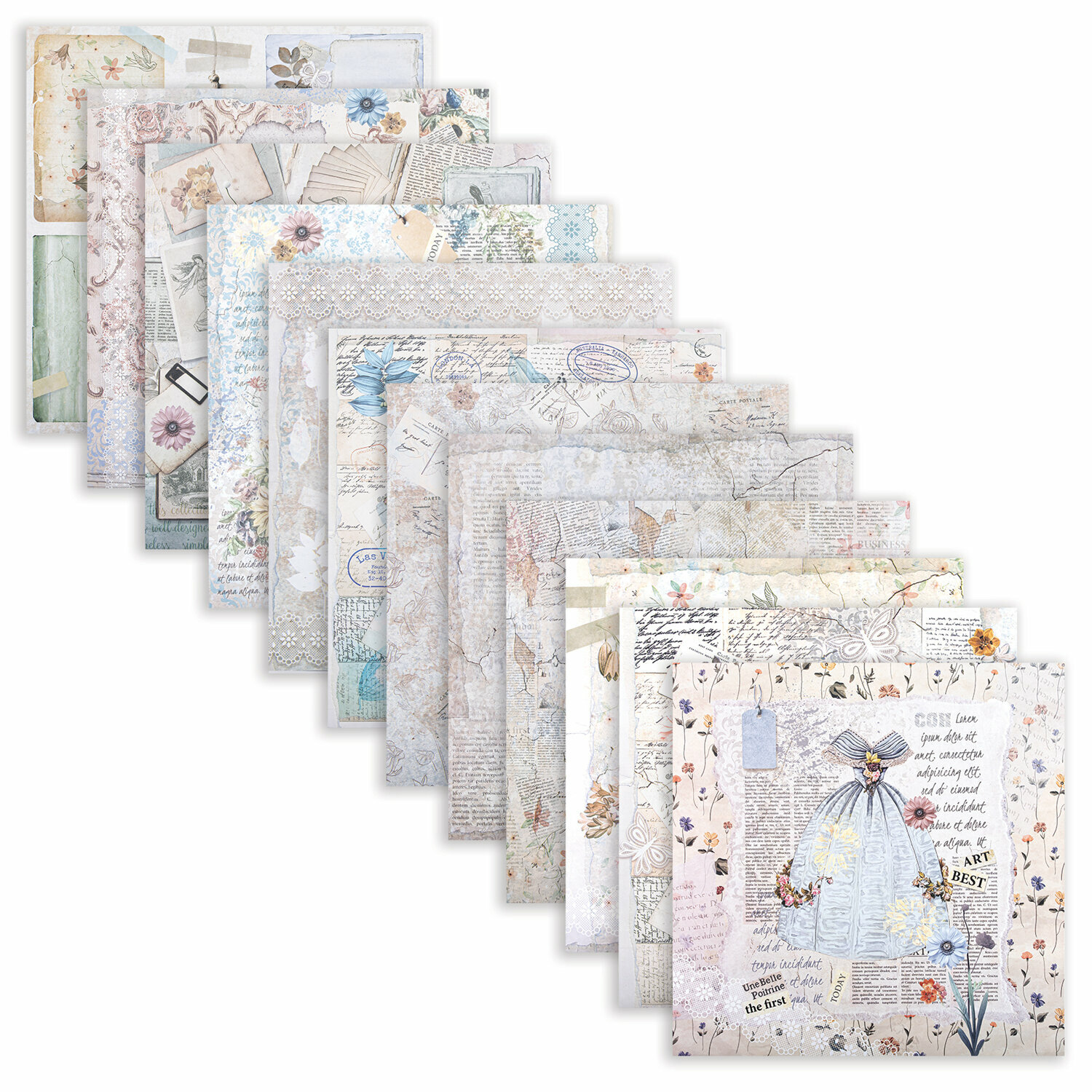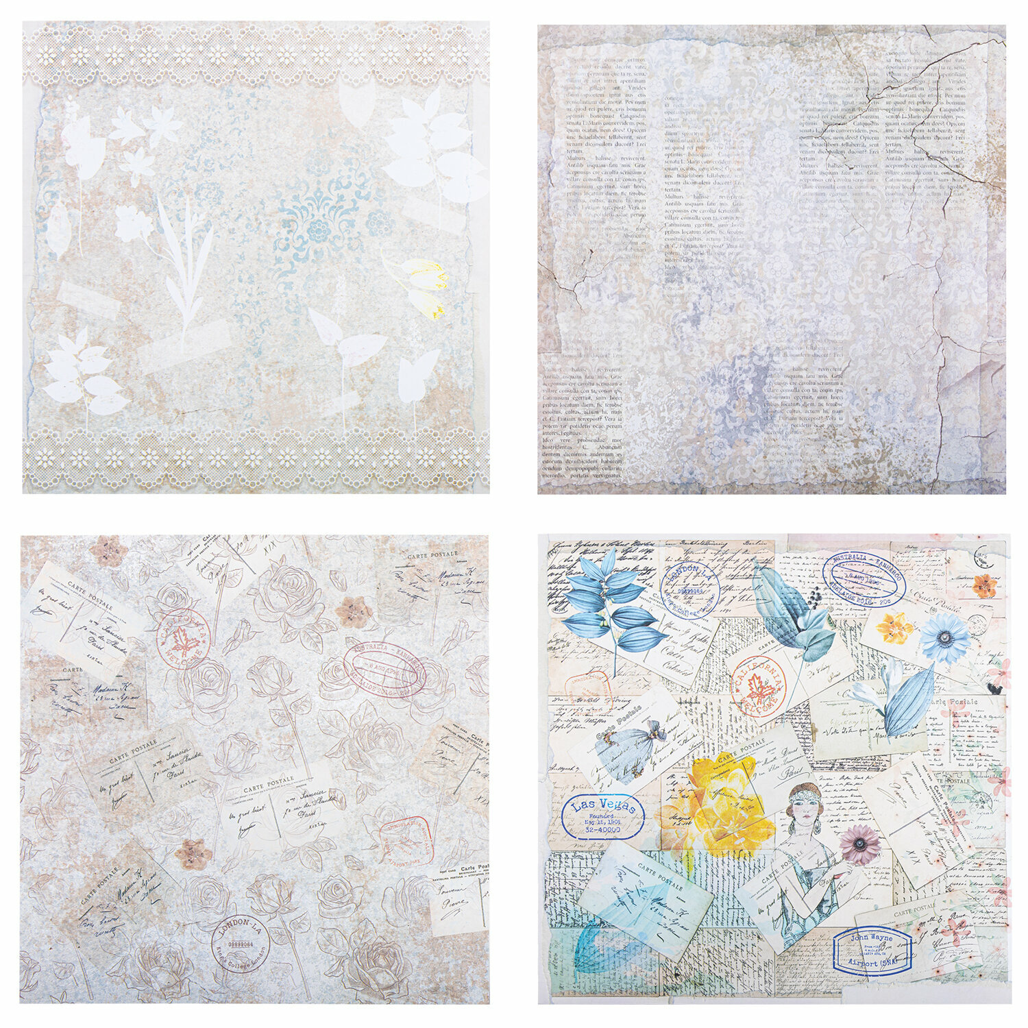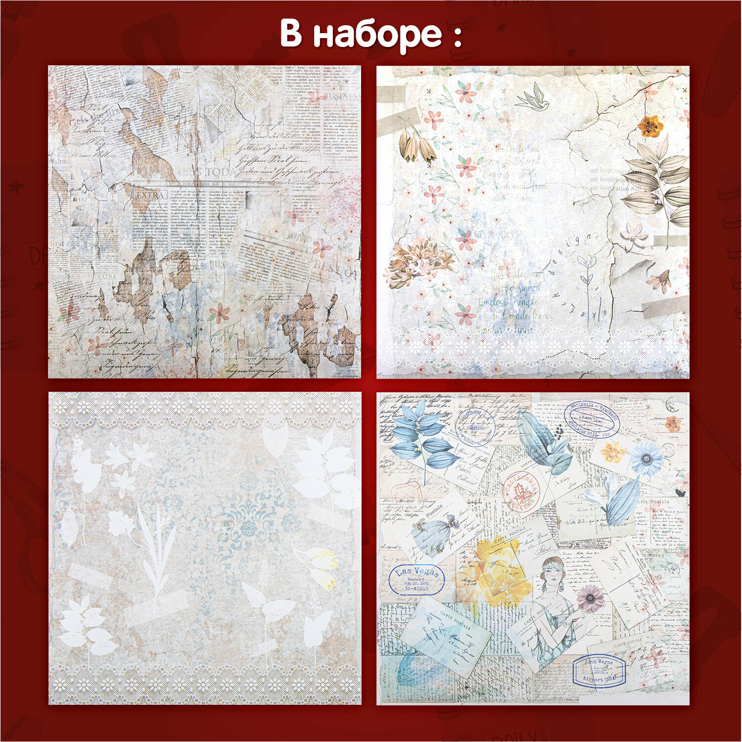 Бумага для скрапбукинга 30x30 см двусторонняя, набор 12 л Свадебный, крафтовая для творчества, рукоделия, упаковки подарков, 180 г/м2, Остров Сокровищ, 665435