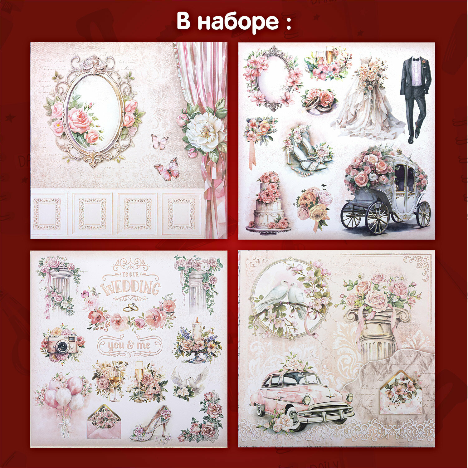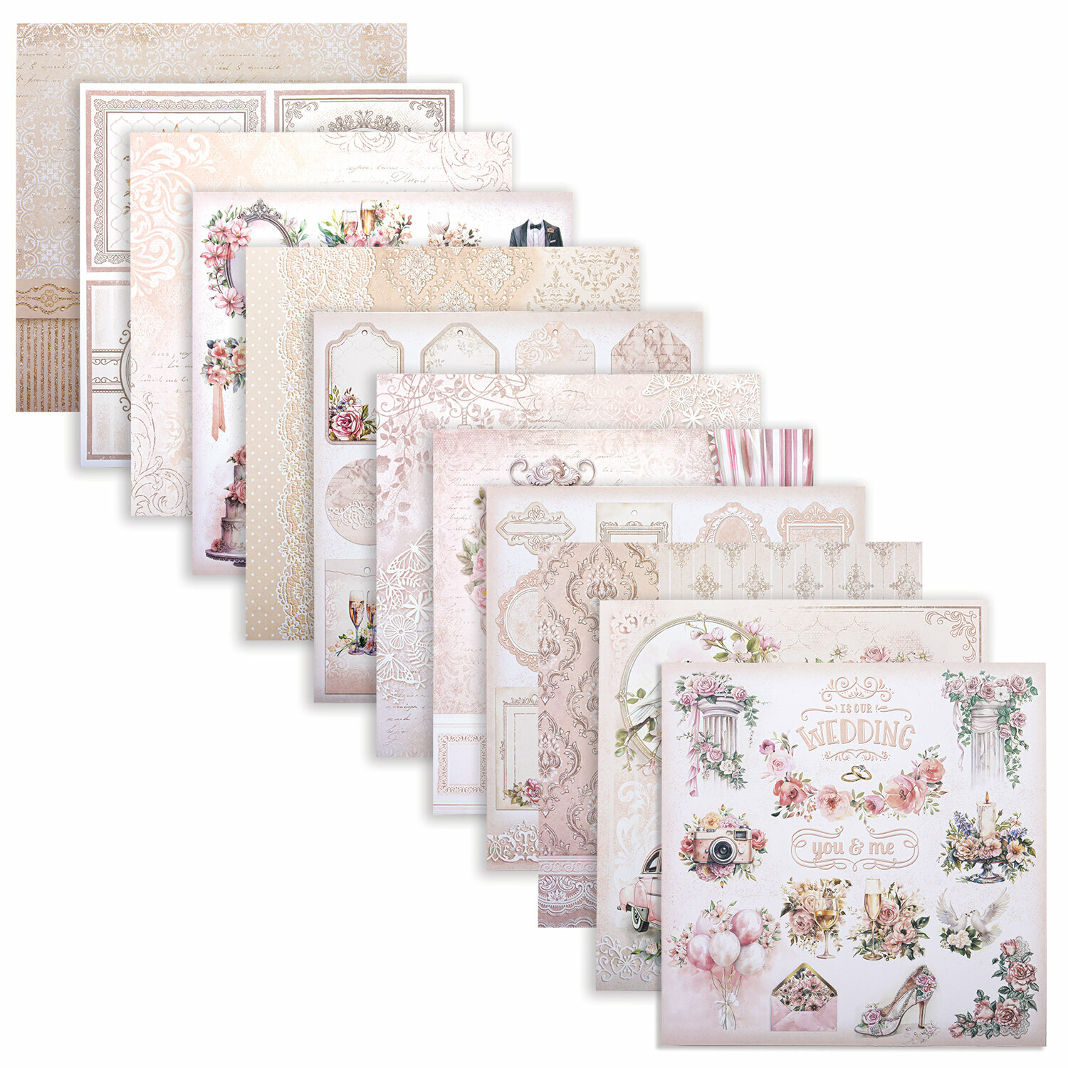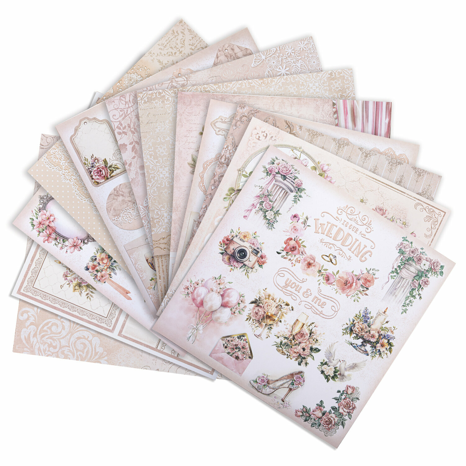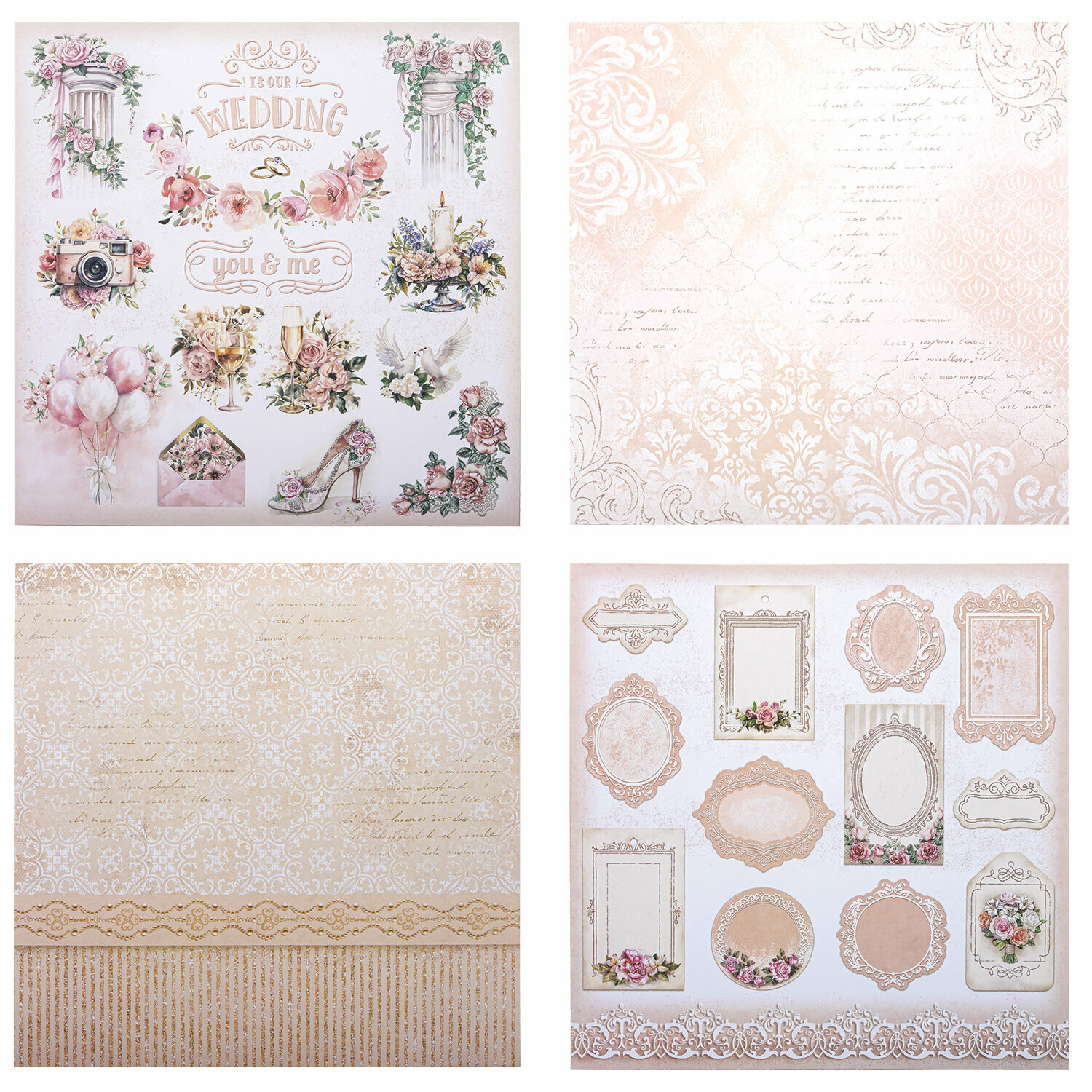 Купить Бумага для скрапбукинга 30x30 см двусторонняя, набор 12 л Свадебный, крафтовая для творчества, рукоделия, упаковки подарков, 180 г/м2, Остров Сокровищ, 665435