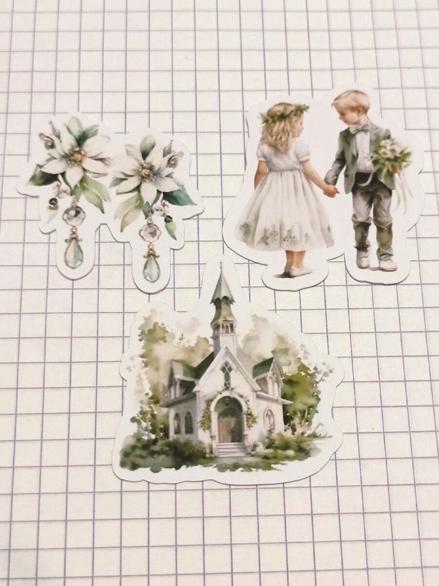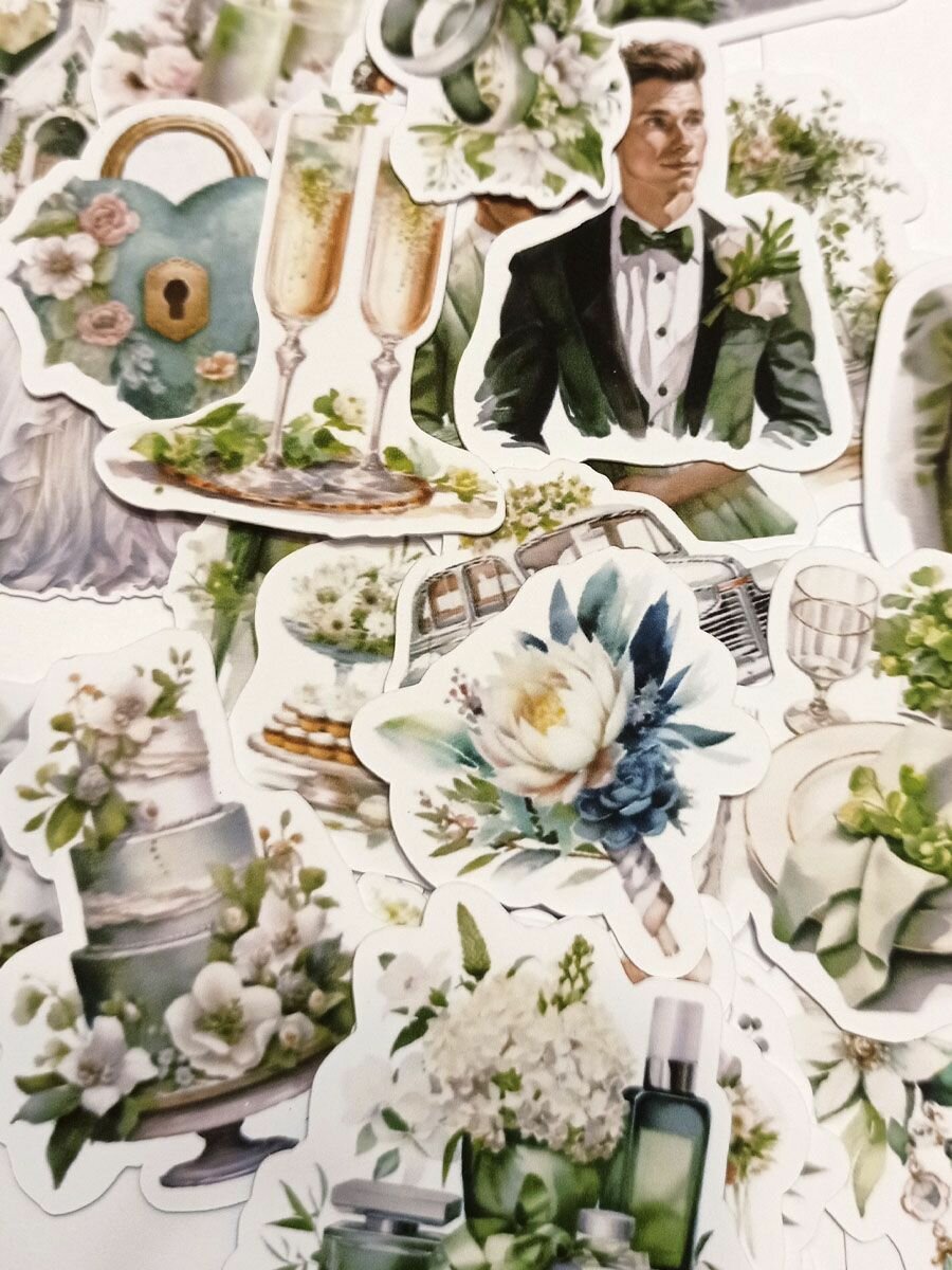 СохранитьВысечки для скрапбукинга "Свадьба в Зеленых Тонах" набор 31 шт для дизайна интересное:
