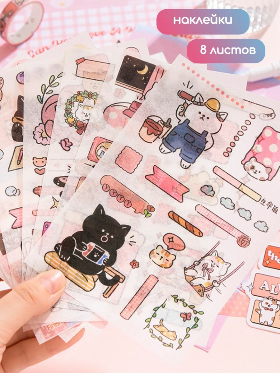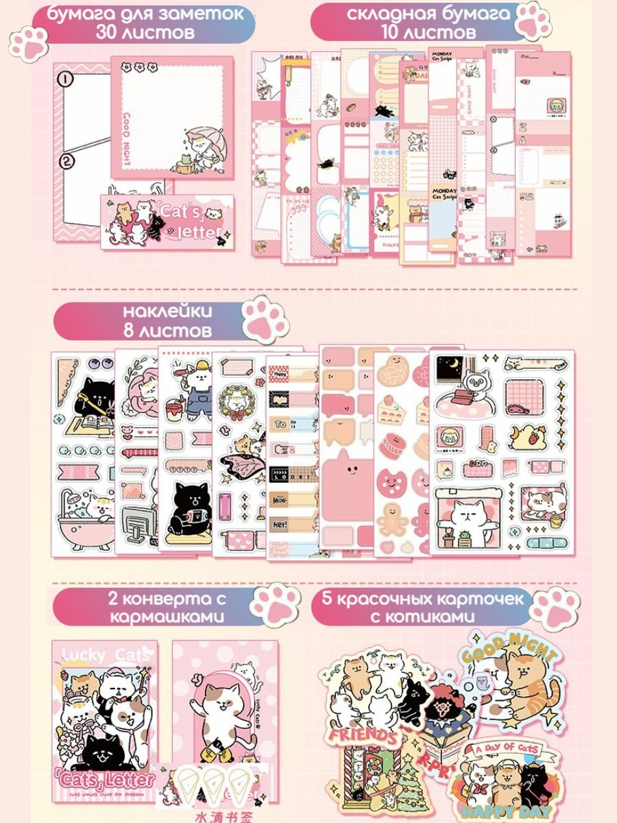 Подарочный набор "Котики", для скрапбукинга, с блокнотом, розовый интересное: