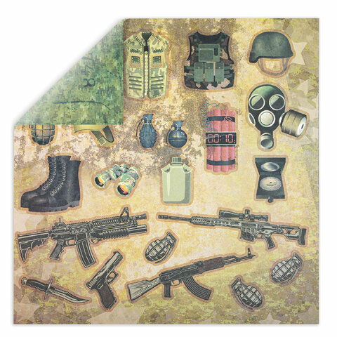 Купить Комплект 5 шт, Бумага для скрапбукинга 30х30 см "Милитари", двусторонняя, 12 листов, 180 г/м2, остров сокровищ, 665436