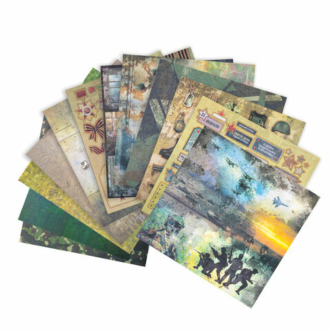 Комплект 5 шт, Бумага для скрапбукинга 30х30 см "Милитари", двусторонняя, 12 листов, 180 г/м2, остров сокровищ, 665436 интересное: