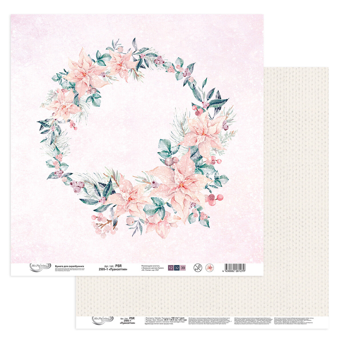 Купить Бумага для скрапбукинга "Mr.Painter" PSR 2505 "Пуансеттия" 190 г/кв. м 30.5 x 30.5 см 1
