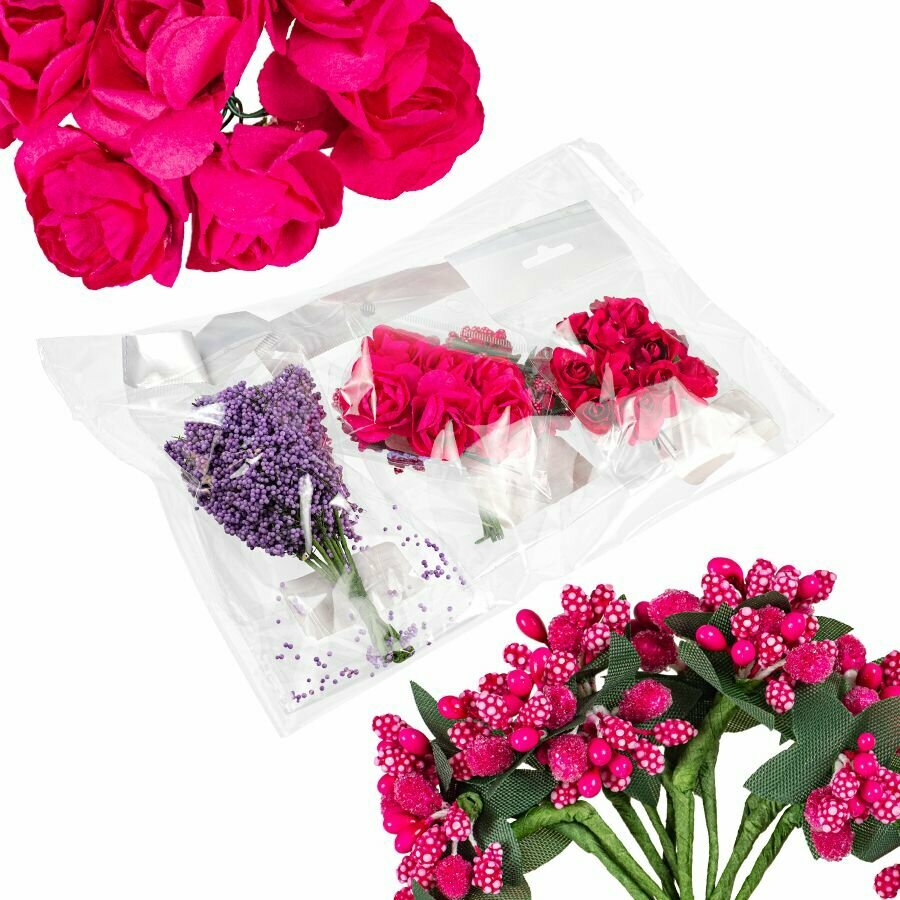 Купить Набор цветов для скрапбукинга "Розовый вечер", темно-розовый, ярко-розовый, сиреневый, темно-розовый, 42 шт.
