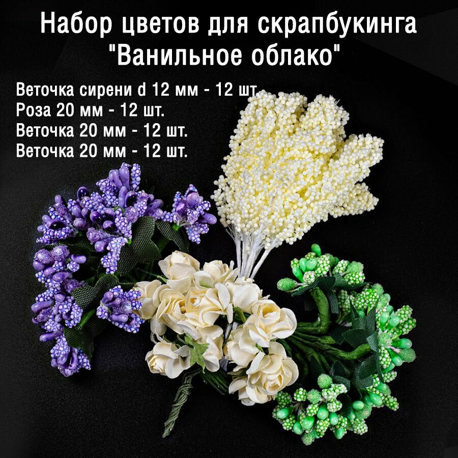 Купить Набор цветов для скрапбукинга "Ванильное облако", молочный, светло-желтый, светло-зеленый, сиреневый, 48 шт.