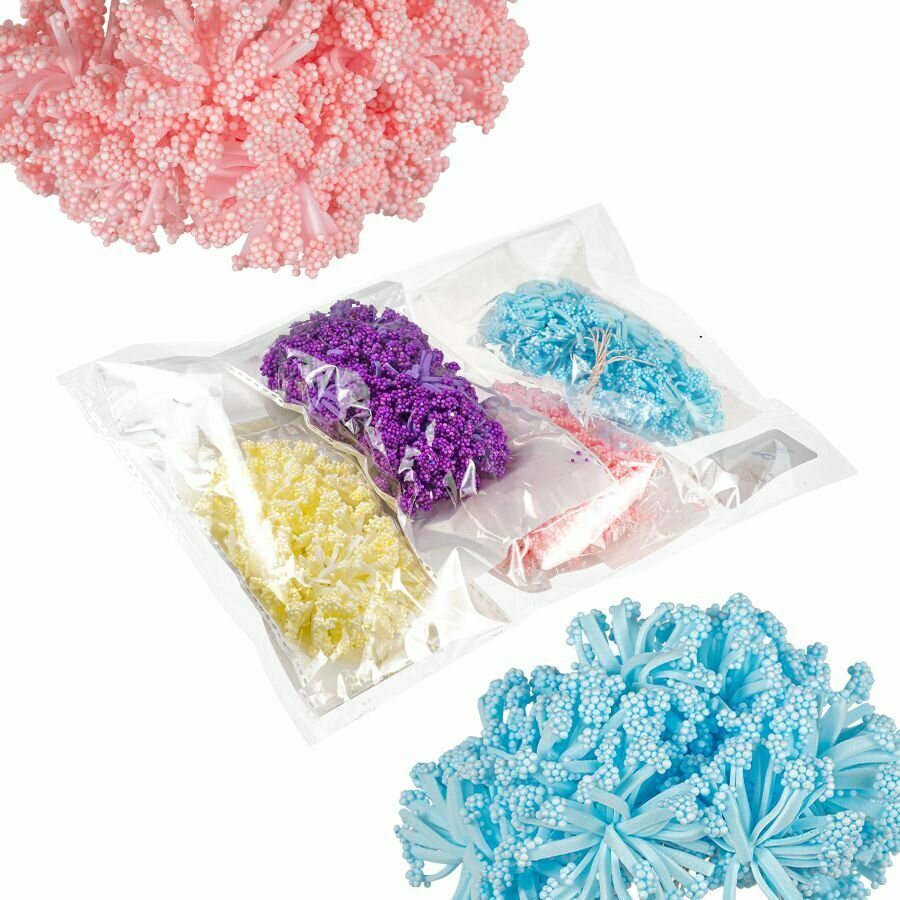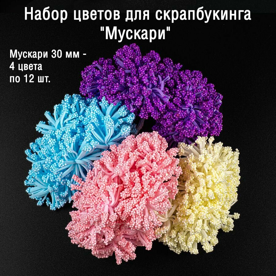 Купить Набор цветов для скрапбукинга "Мускари", светло-желтый, розовый, голубой, фиолетовый, 48 шт.