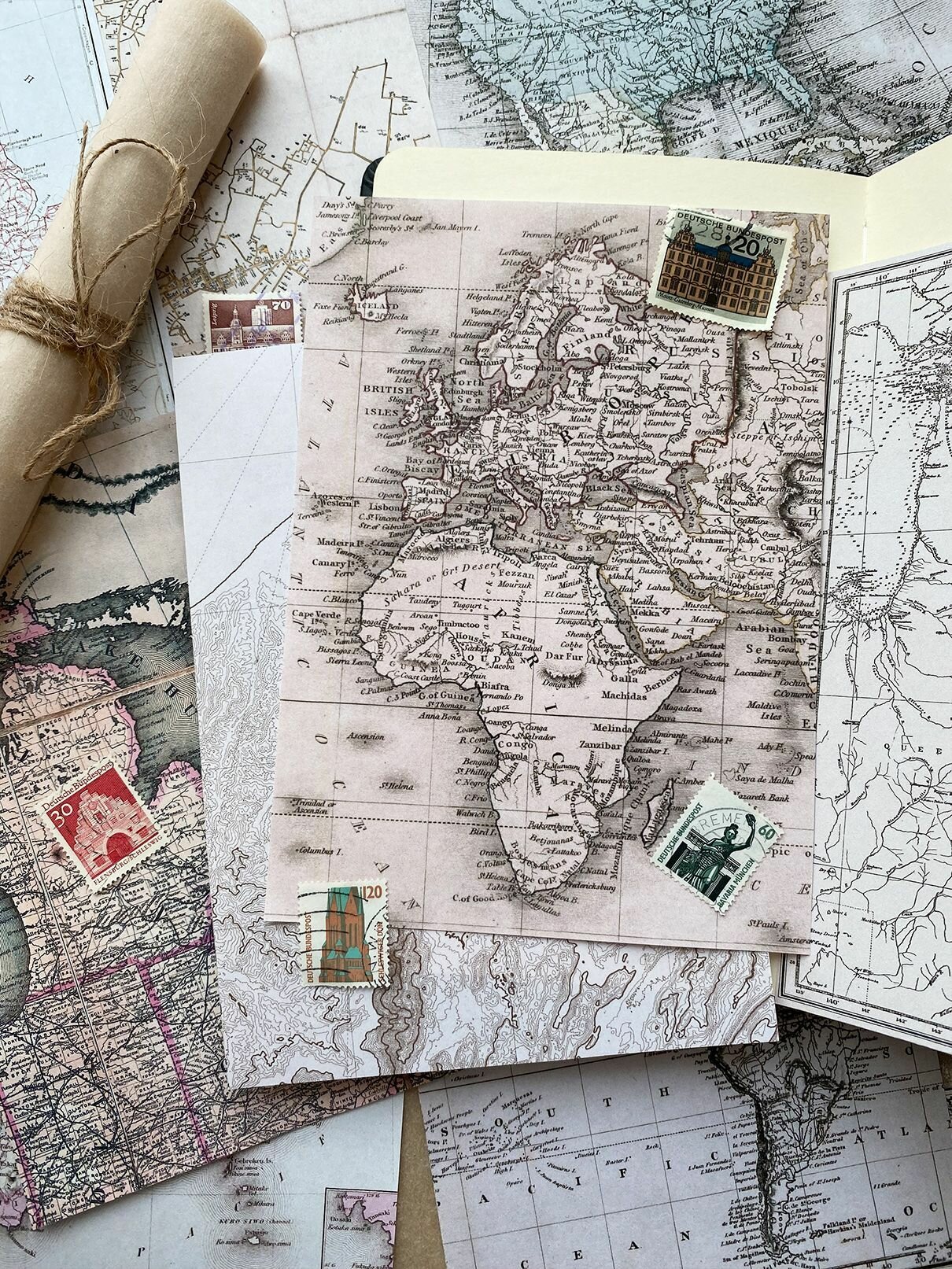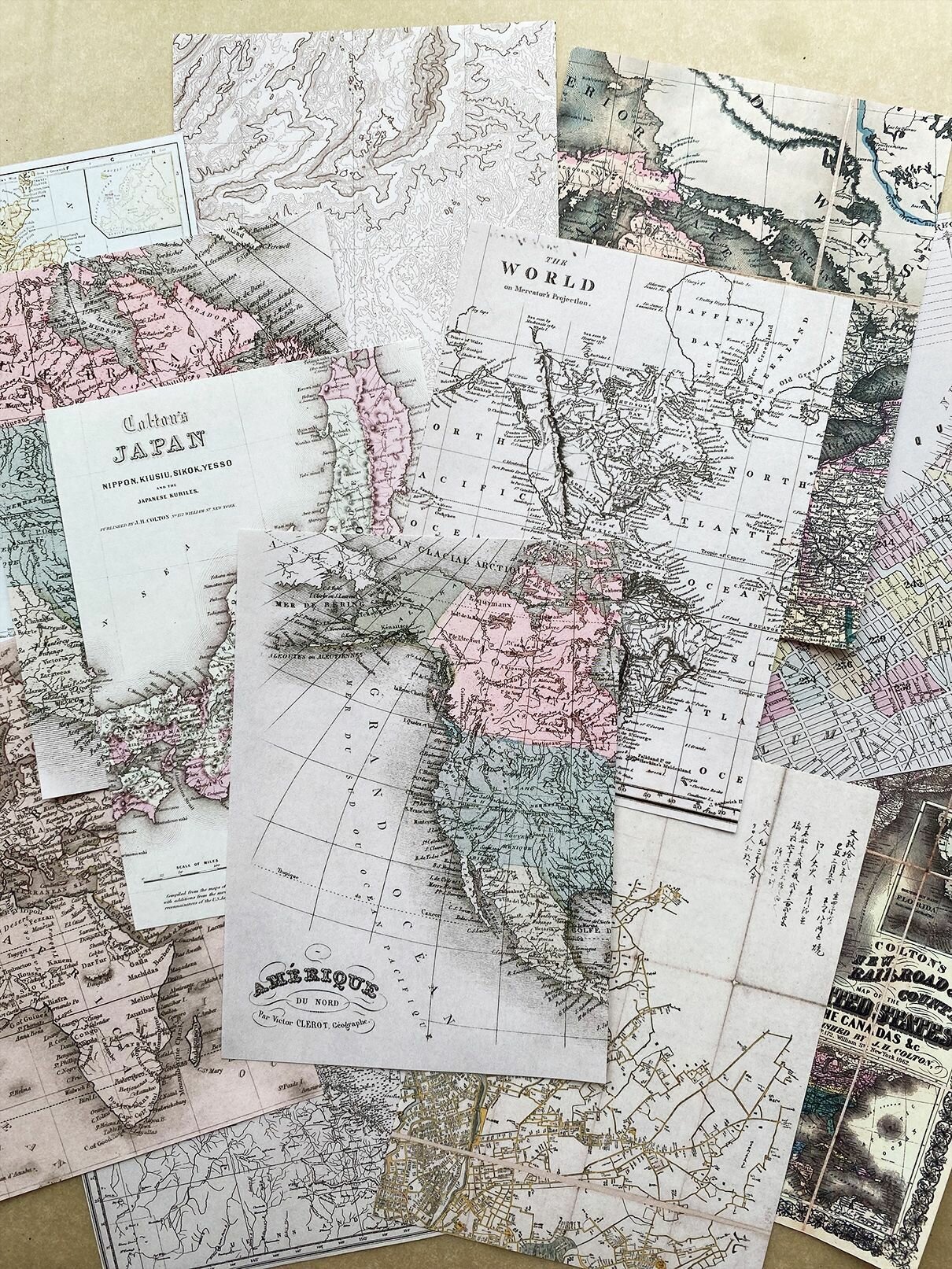 Купить Набор бумаги для рукоделия, творчества и скрапбукинга - старинные карты (13 х 18 см) 12 листов