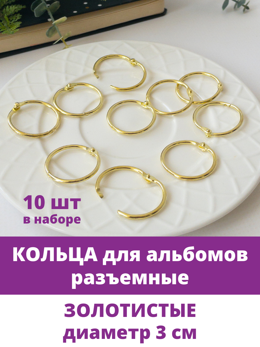Купить Кольца соединительные для альбомов, разъемные, диаметр 3 см, Золотистые, набор 10 шт.