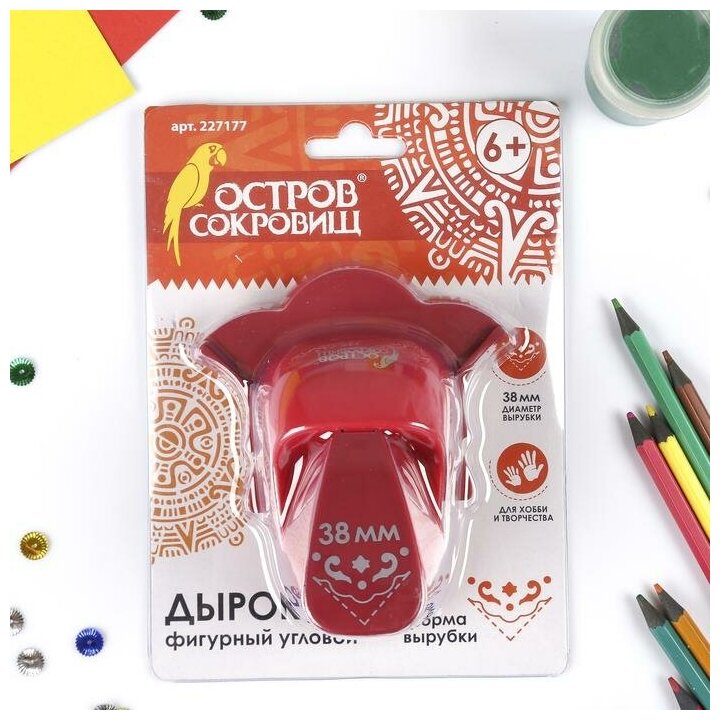 Дырокол фигурный угловой Узоры, диаметр вырезной фигуры 38 мм, остров сокровищ, 227177 интересное: