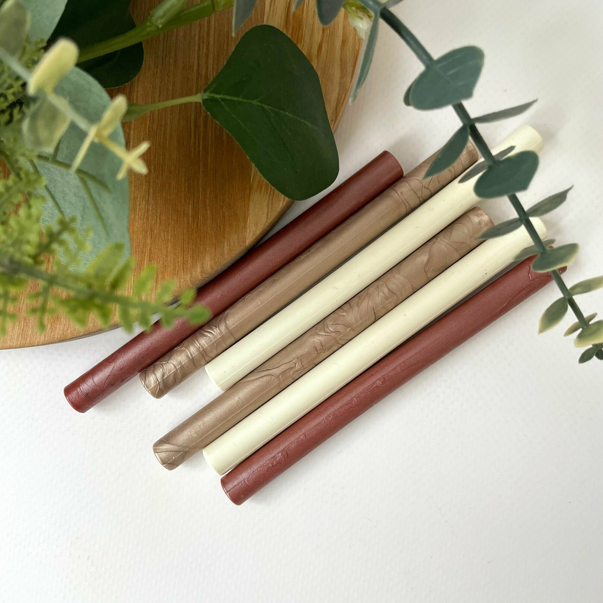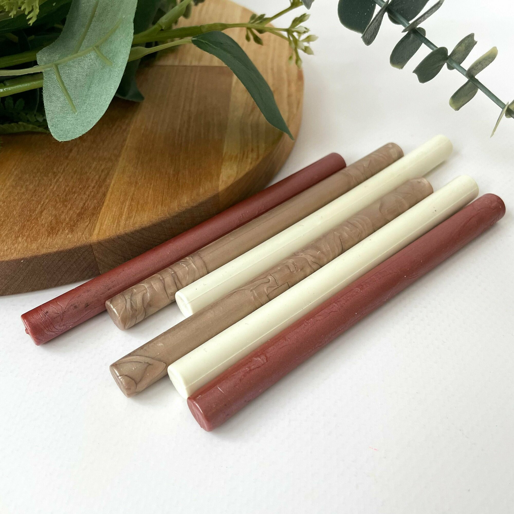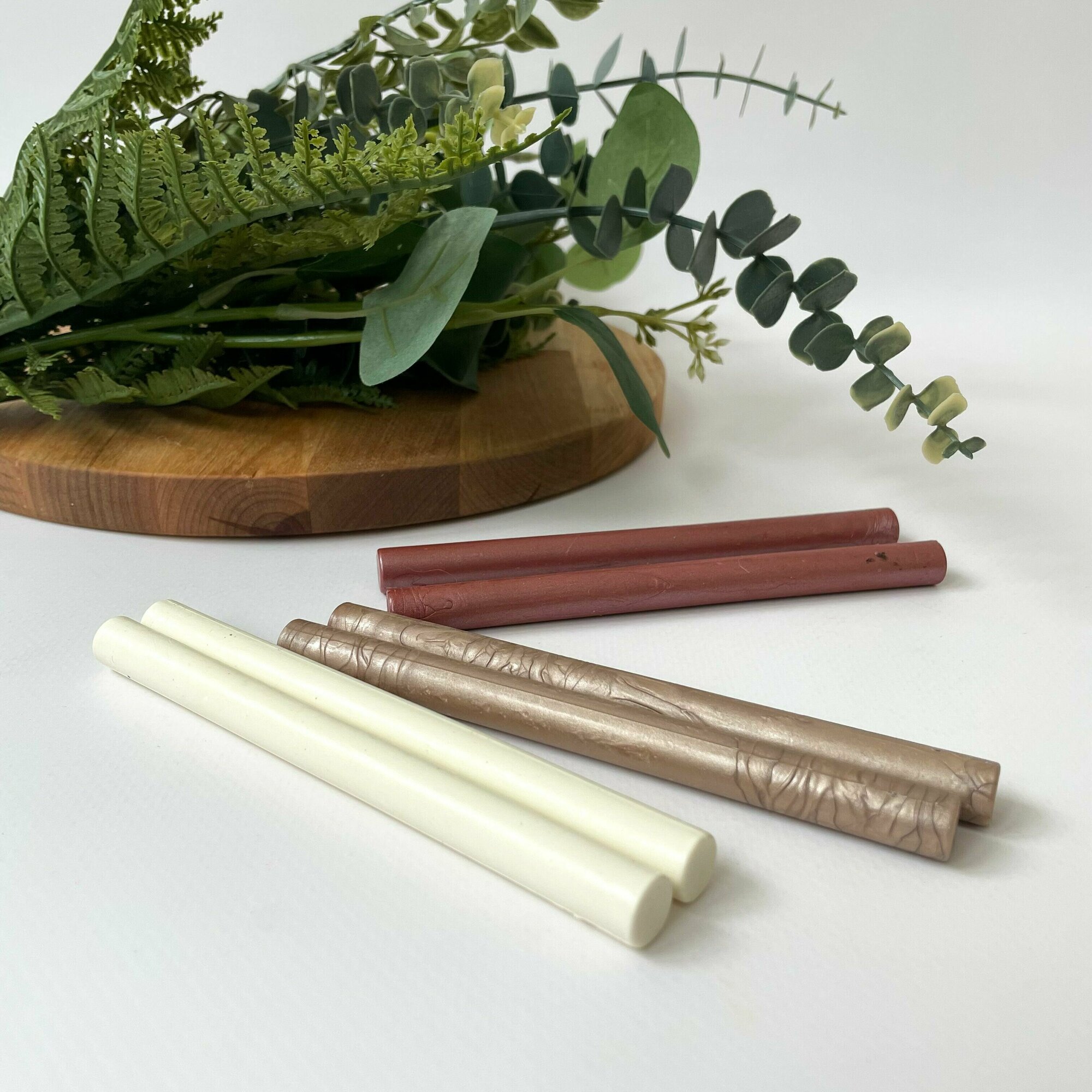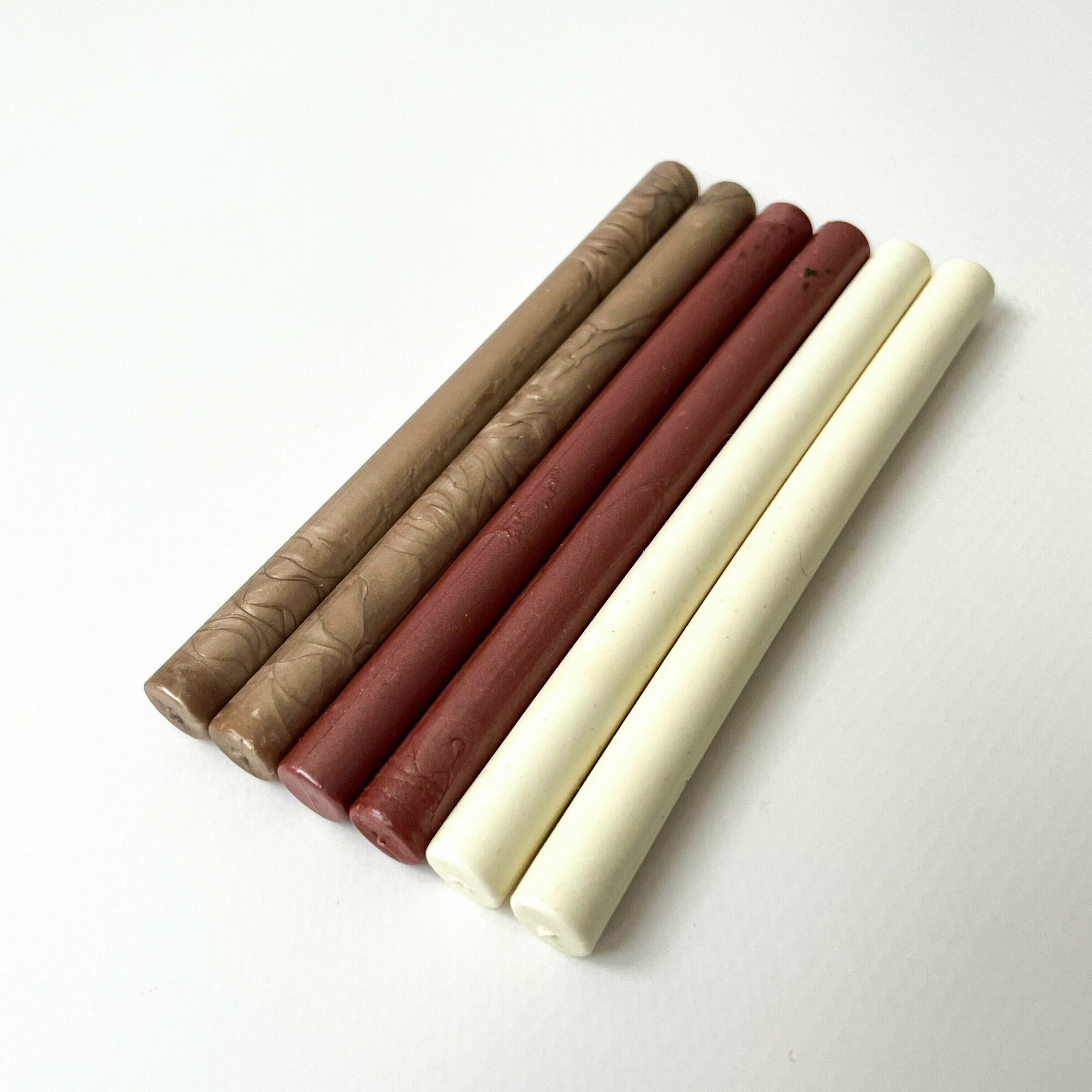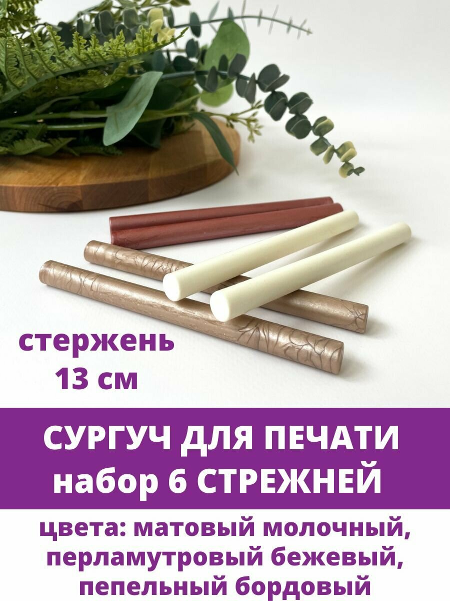 Купить Сургуч для печати, набор 6 стержней: матовый молочный, перламутровый бежевый, пепельный бордовый