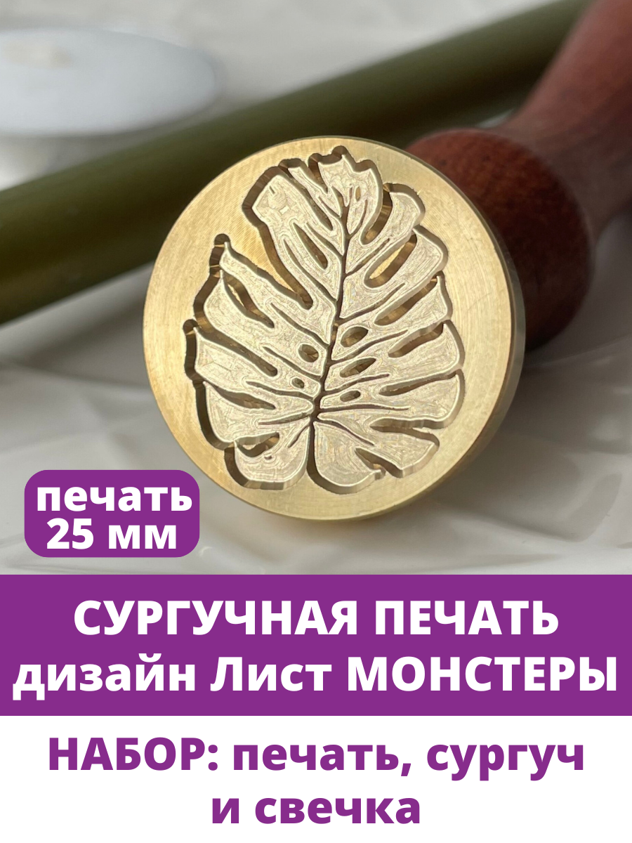 СохранитьСургучная печать для декорирования, набор: печать, сургуч, свеча. Дизайн Лист монстеры интересное: