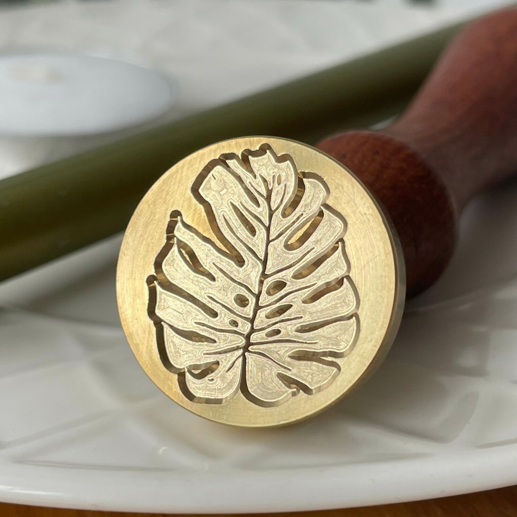 Купить Сургучная печать для декорирования, набор: печать, сургуч, свеча. Дизайн Лист монстеры