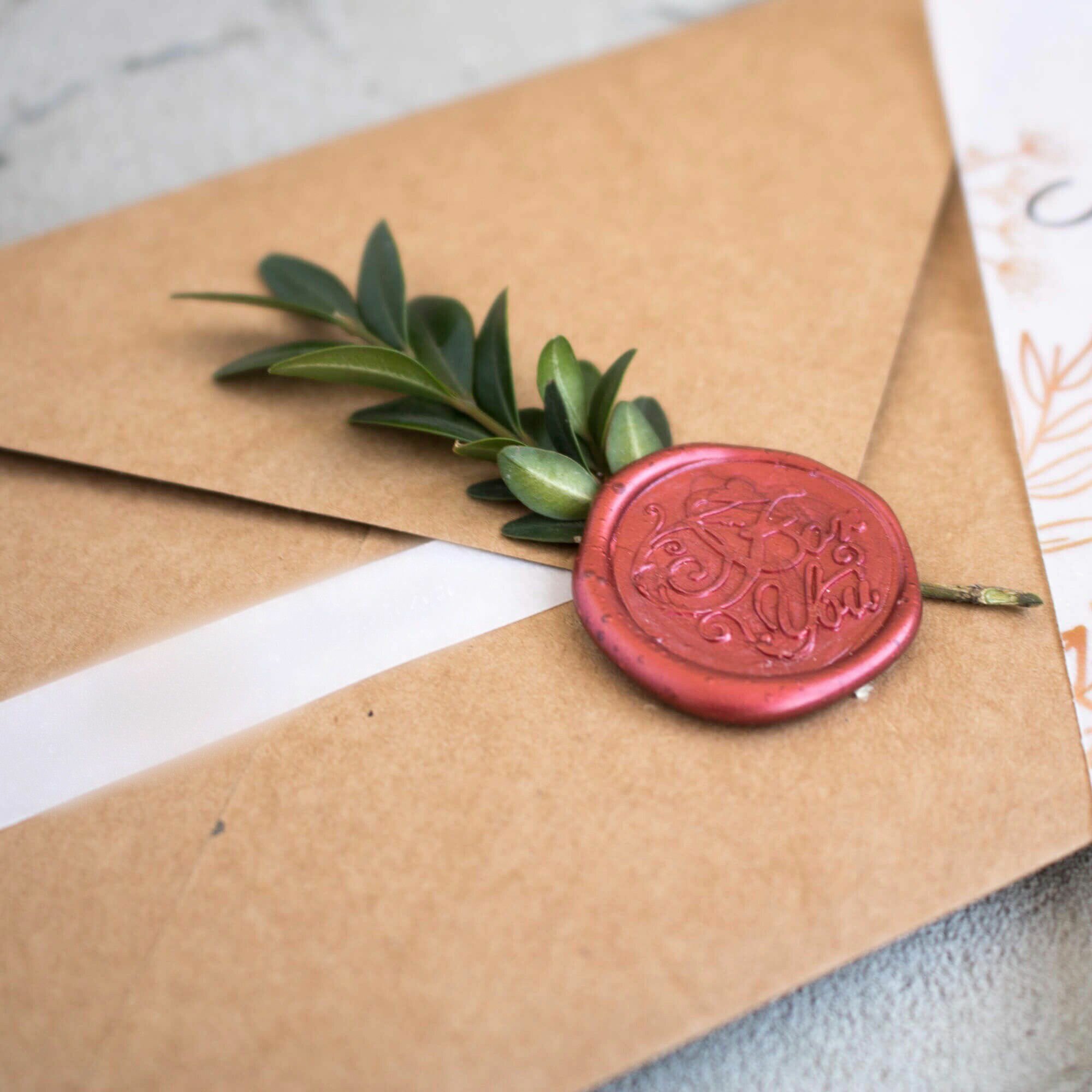 Сургучная печать для декорирования, набор: печать, ложечка, сургуч, свеча. Дизайн Веточка с Листочком.