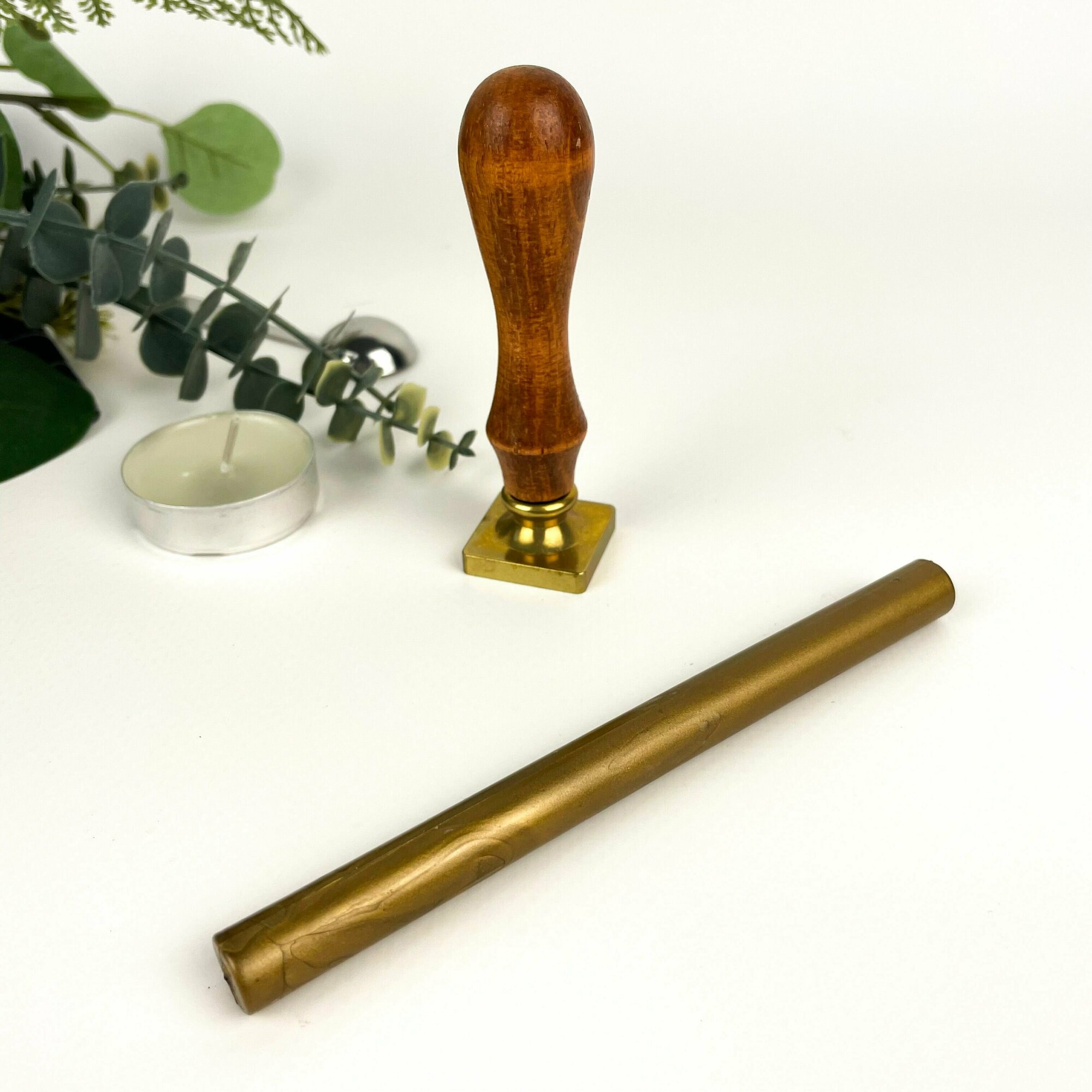 Купить Сургучная печать для декорирования, набор: печать, ложечка, сургуч, свеча. Дизайн Веточка с Листочком.