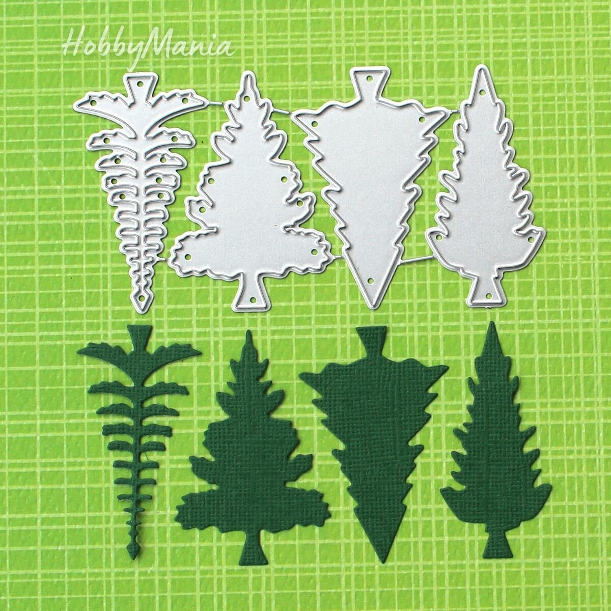 Купить Нож для вырубки и тиснения "Четыре ели" 10,6*5,8 см, для машинки для вырубки, скрапбукинга и рукоделия