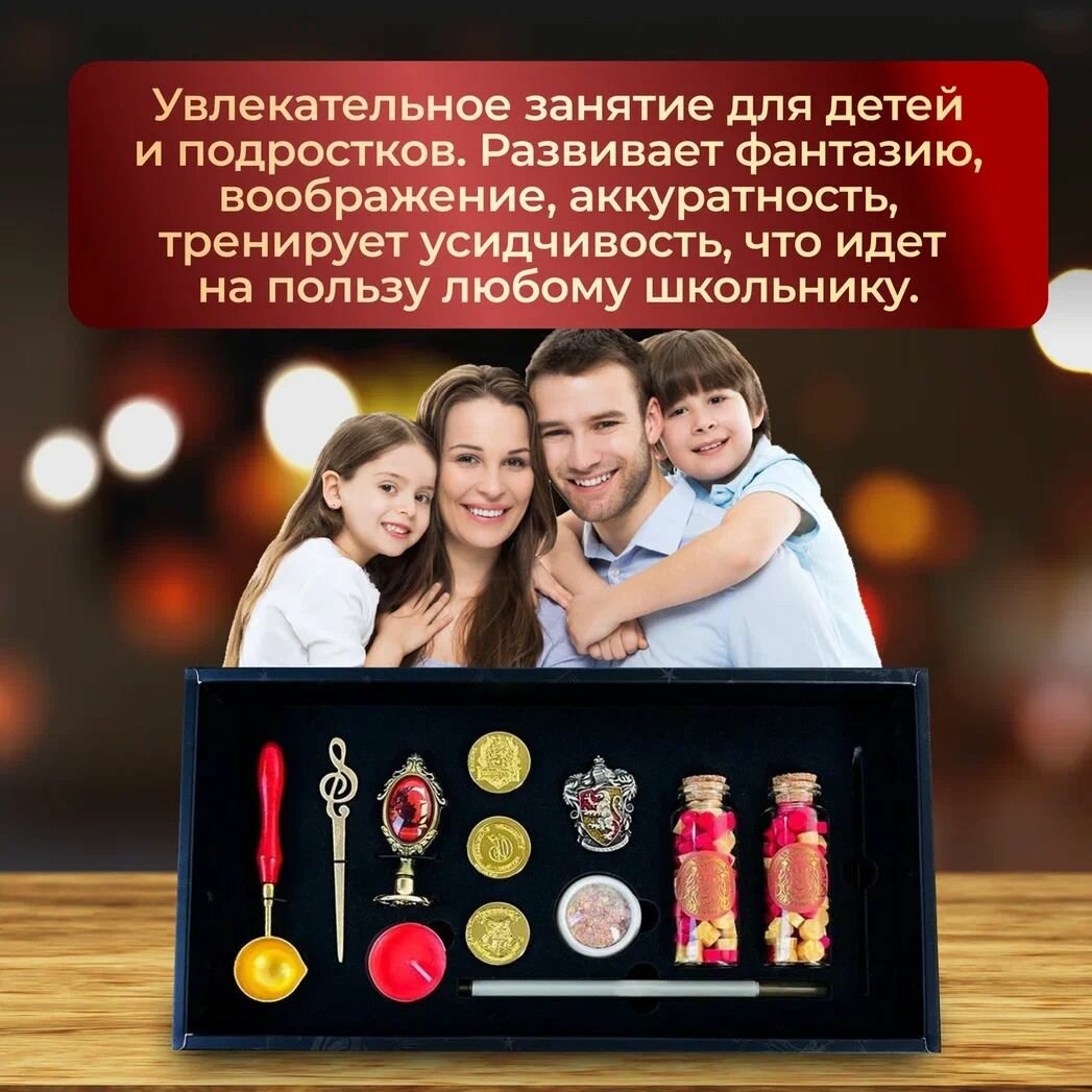 Набор для создания сургучных печатей Хогвартс с воском, инструментами, значком по мотивам Гарри Поттер
