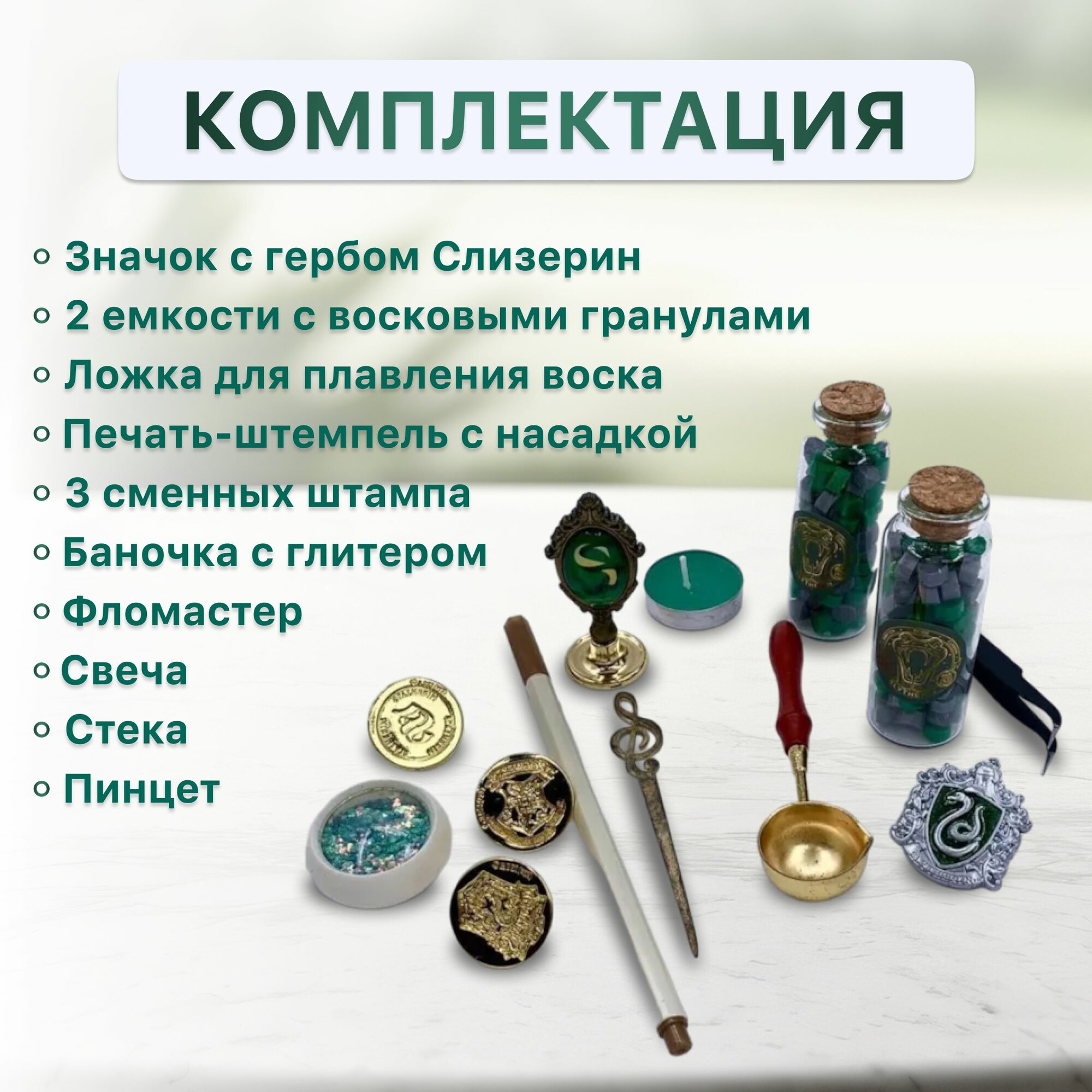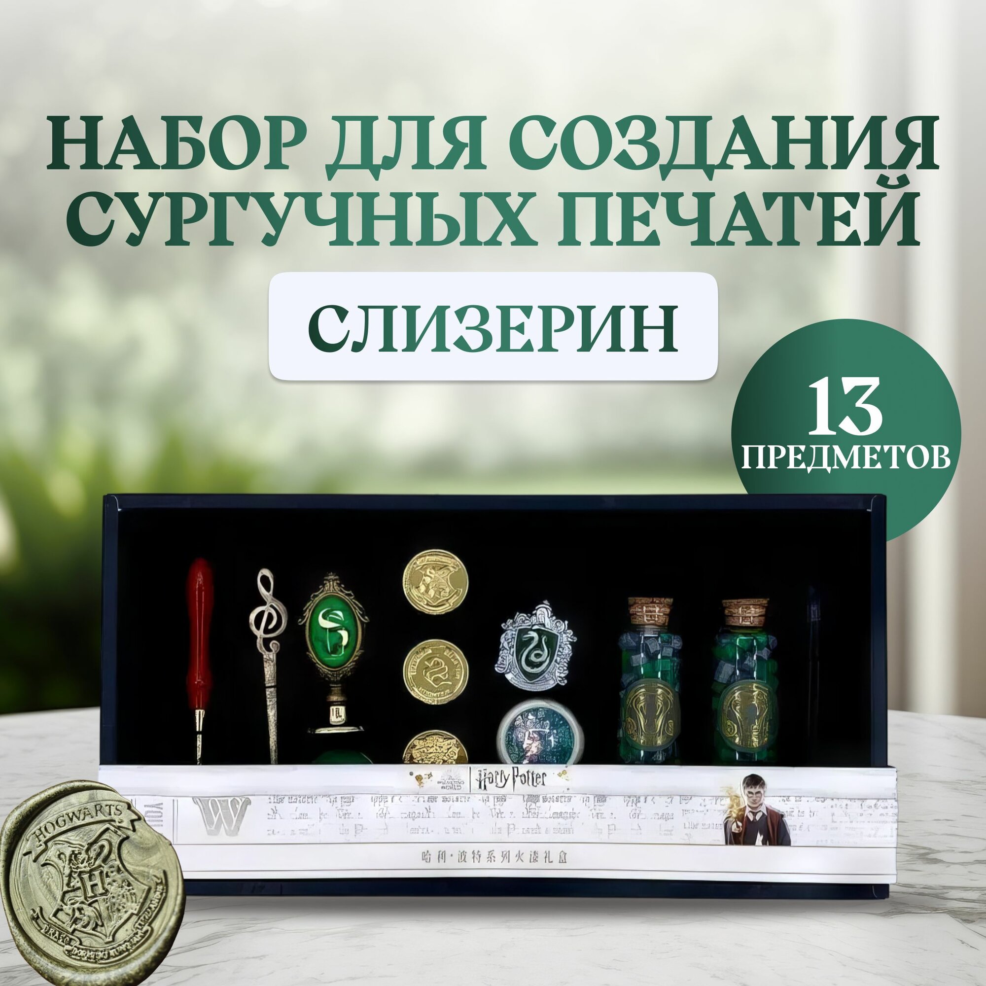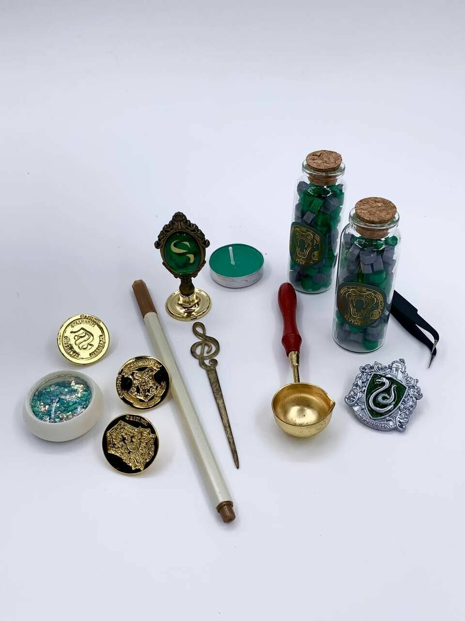 Купить Набор для создания сургучных печатей факультета Слизерин с воском, инструментами, значком по мотивам Гарри Поттер