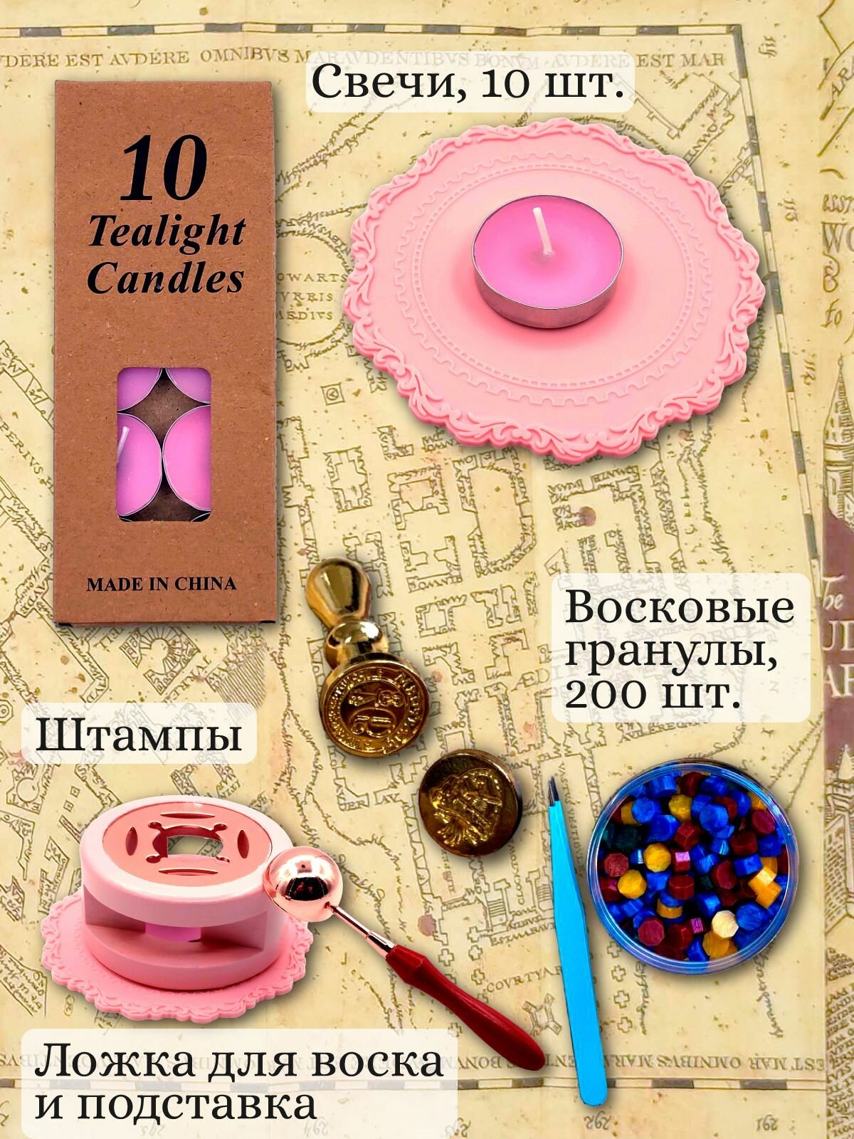 Купить Набор сургучных печатей + воск + свечи по мотивам Гарри Поттер