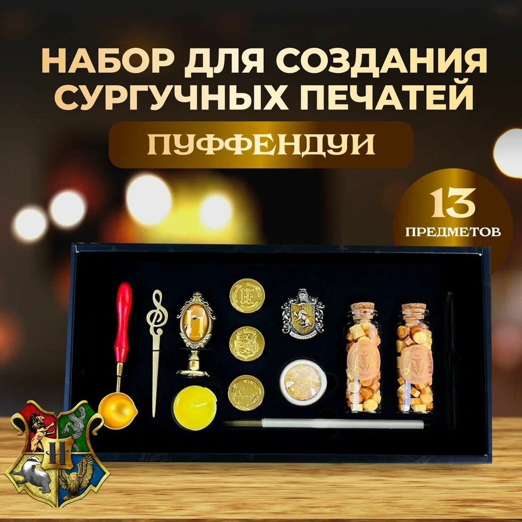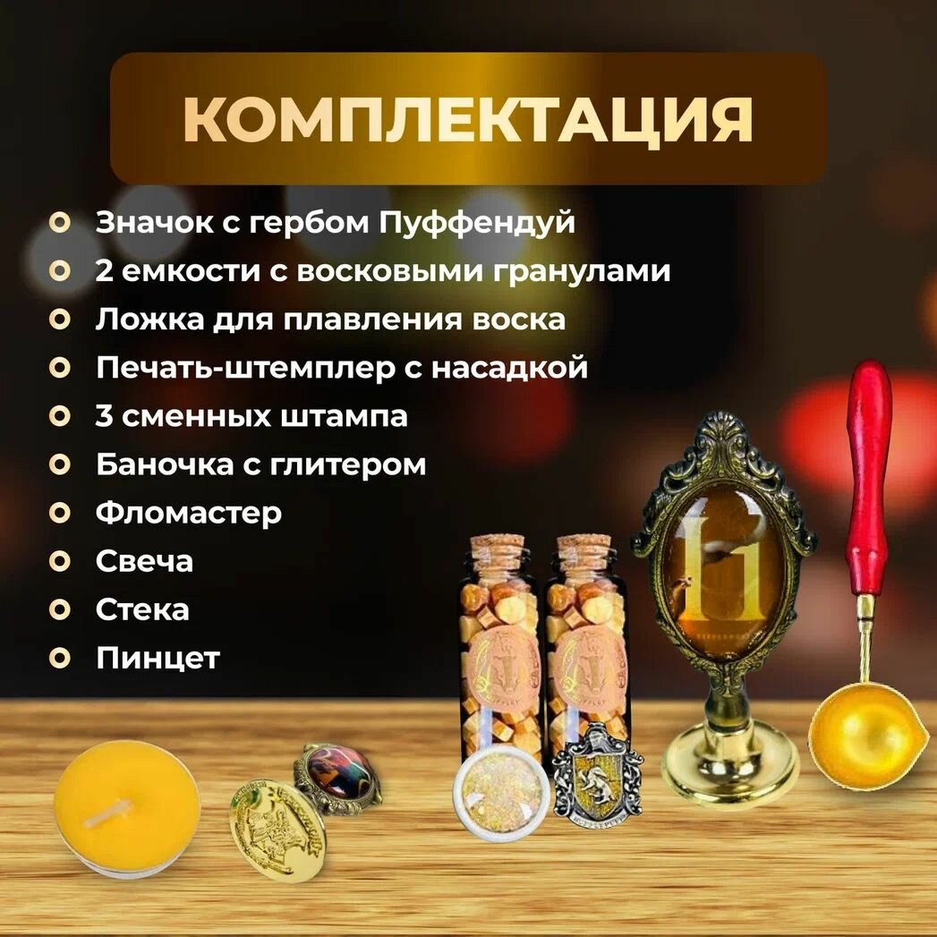 Купить Набор для создания сургучных печатей факультета Пуффендуй с воском, инструментами, значком по мотивам Гарри Поттер