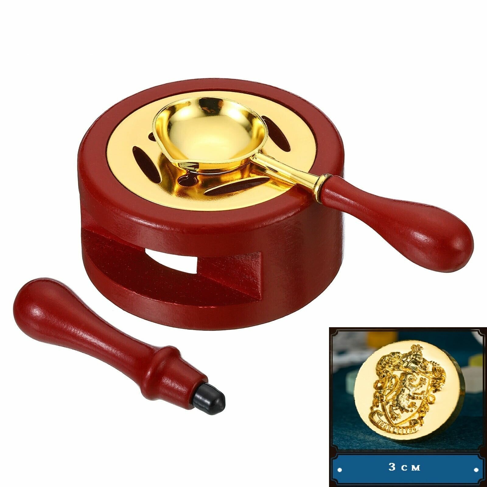 Деревянная печь для плавки сургуча (сургучница)с ложкой и печатью Герб Пуффендуй Гарри Поттер
