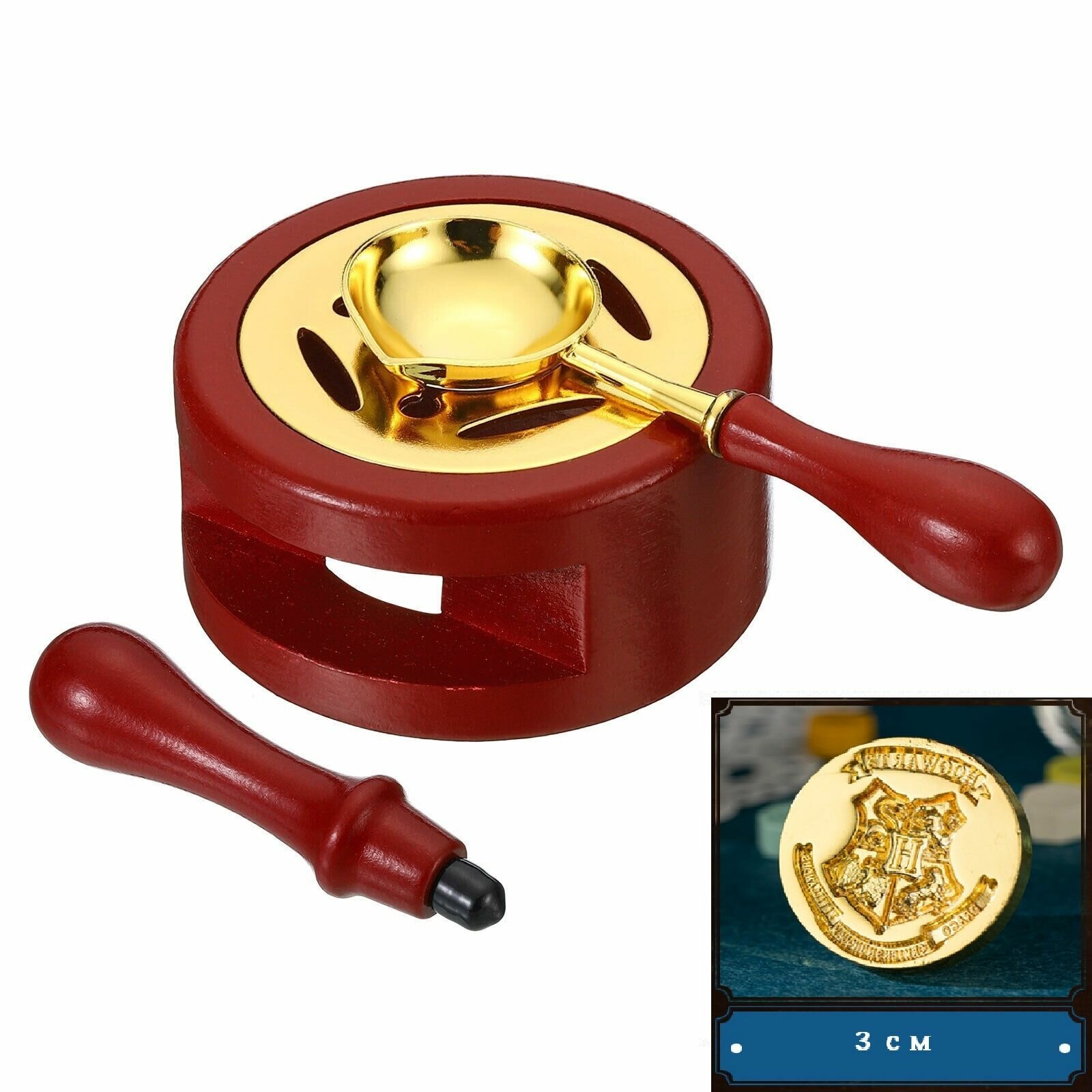 Деревянная печь для плавки сургуча (сургучница)с ложкой и печатью платформа 9 3/4 Гарри Поттер