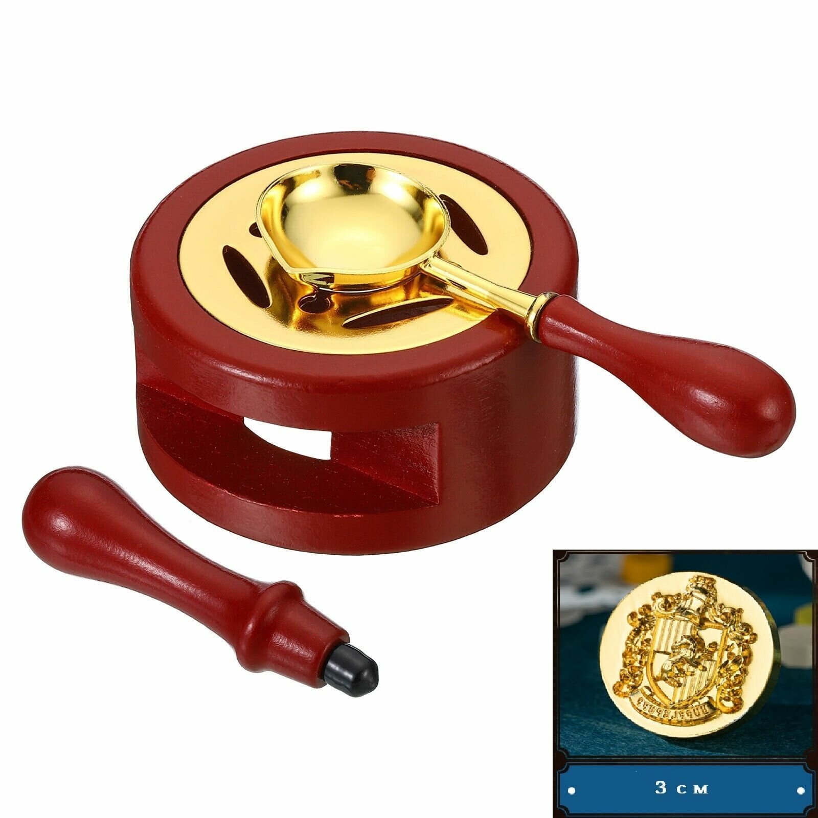 Деревянная печь для плавки сургуча (сургучница)с ложкой и печатью Подарок