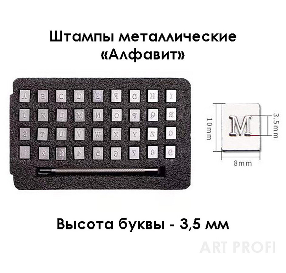 Купить Металлические штампы Алфавит - 3,5 мм высота буквы. Штамп для тиснения кожи, творчества