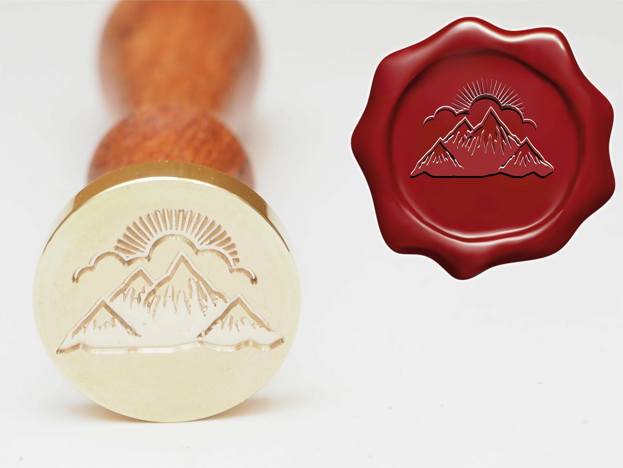 Сургучная печать с гравировкой "Горы" и деревянной ручкой интересное: