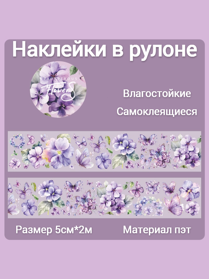 Наклейки для срапбукинга и творчества "Цветы и бабочки" в рулоне, размер 5см*2м интересное: