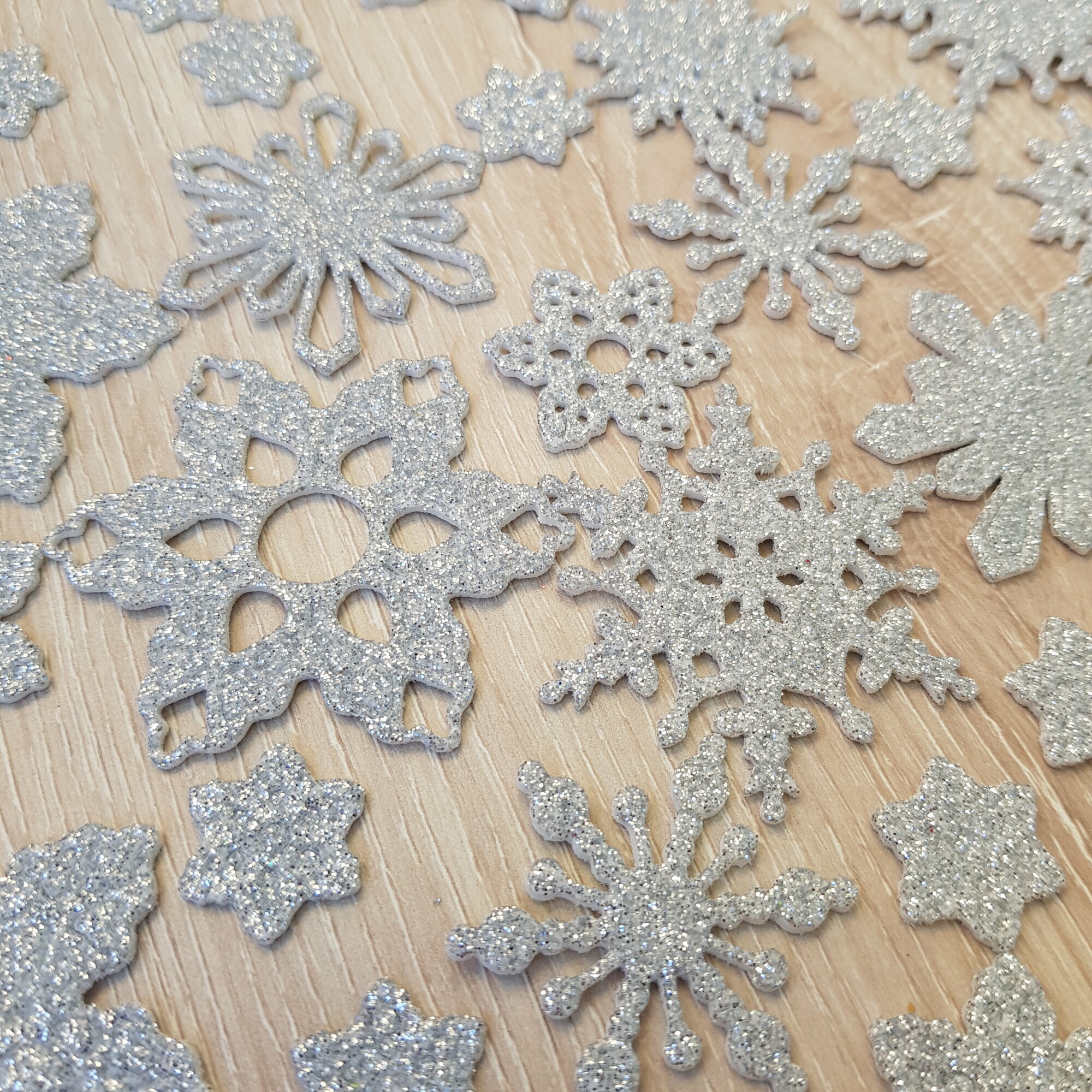 Купить Вырубка из фоамирана "Снежинки" 50 шт, серебро