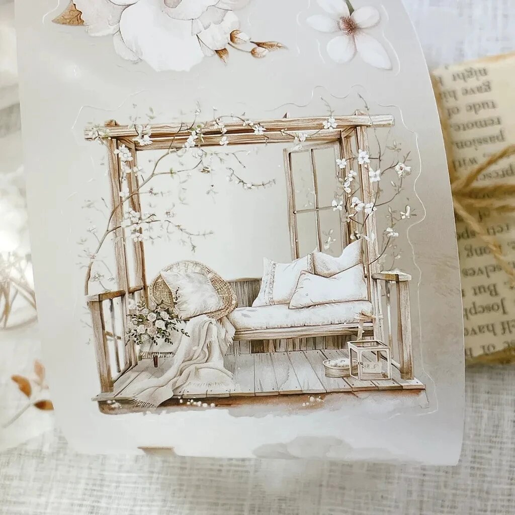 Купить Wollme матовая ПЭТ-лента Vintage White Blooms 6,5х100 см, Белый