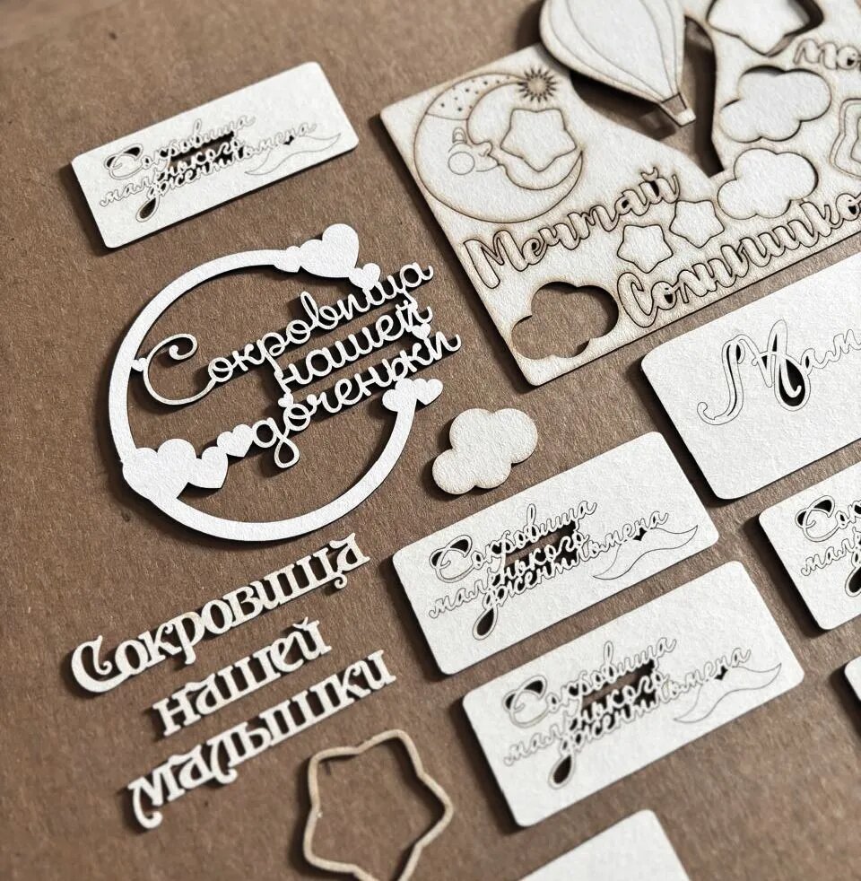 Набор Чипборд для тиснения Замши - Доченька, толщина 1,5 мм, 7 шт. + Подарок