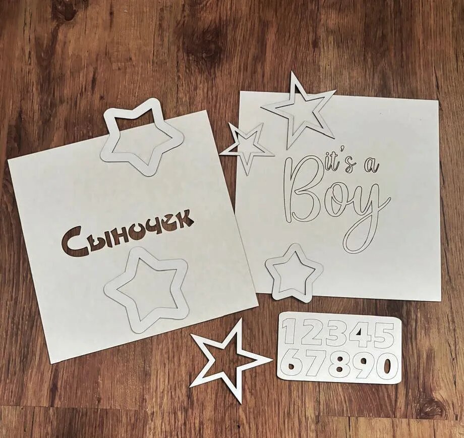 СохранитьНабор Чипборд для тиснения Замши - Сыночек и звезды, толщина 1,5 мм, 9 шт. + Подарок интересное: