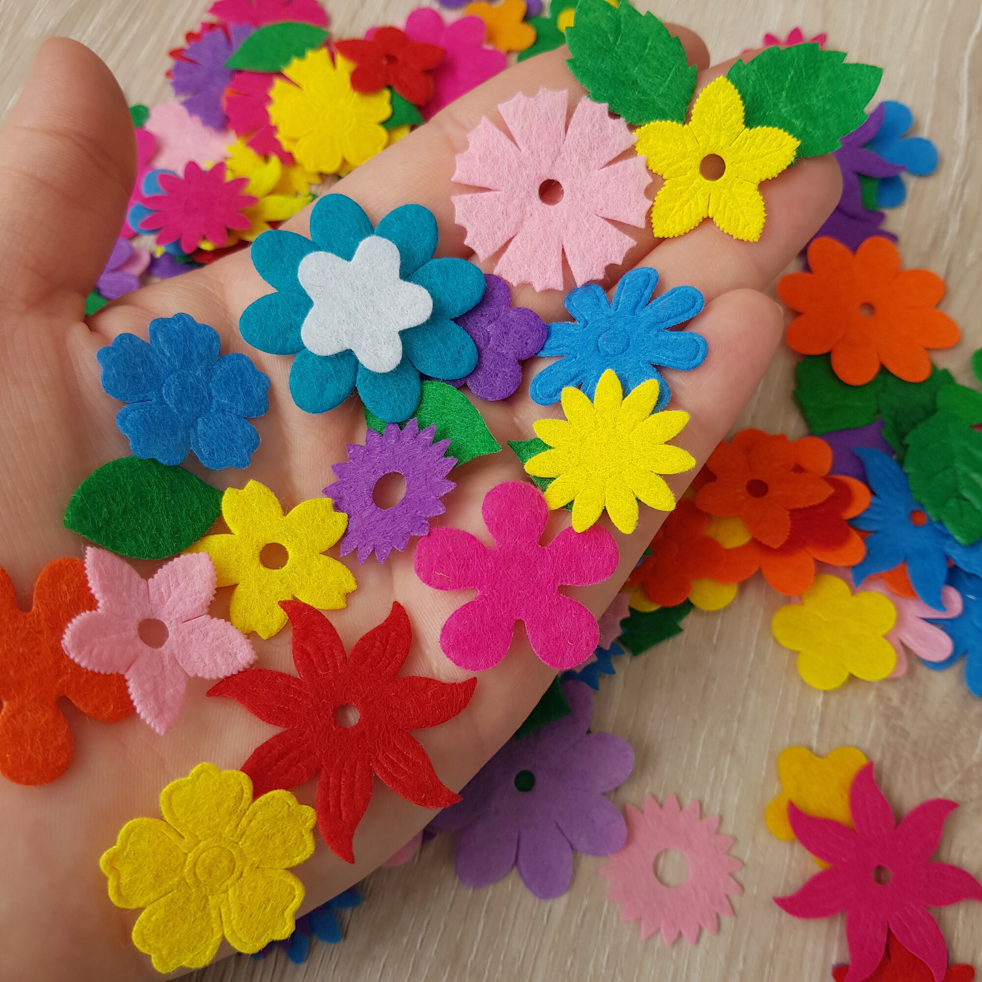 Купить Вырубка из фетра для творчества и рукоделия "Цветочный микс", 210 шт