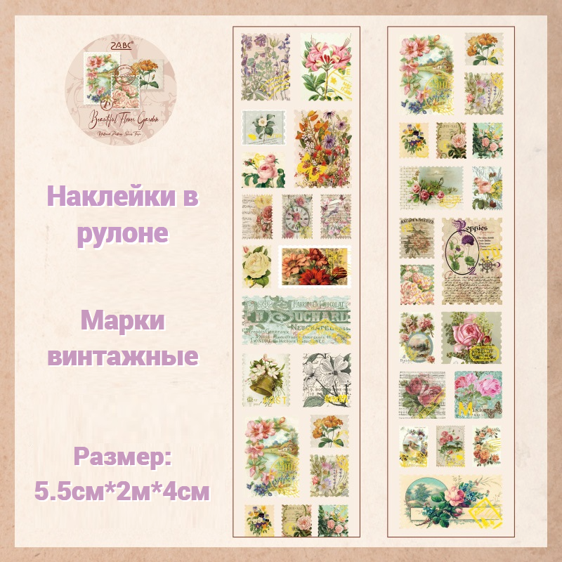 Купить Декоративные наклейки марки "Цветы", 55мм x 2м, винтажный стиль, для скрапбукинга