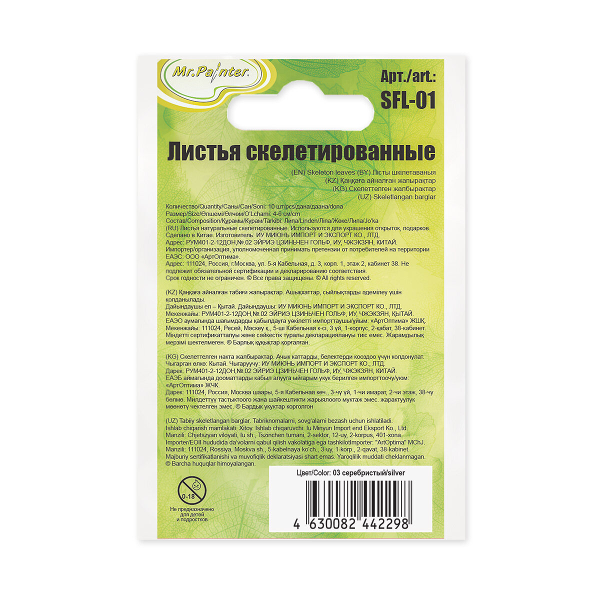 Листья скелетированные "Mr.Painter" SFL-01 6 см 10 шт. 03 серебристый интересное: