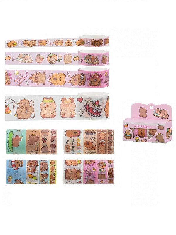 СохранитьНабор Клейкая лента декоративная капибара бумажная 4 ленты разного размера розовый интересное: