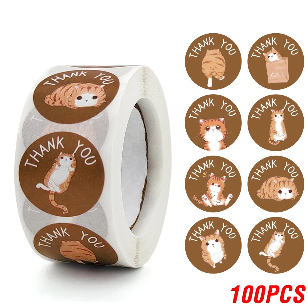 Купить Круглые наклейки с котом, бумага, 100/500 шт, Коричневый