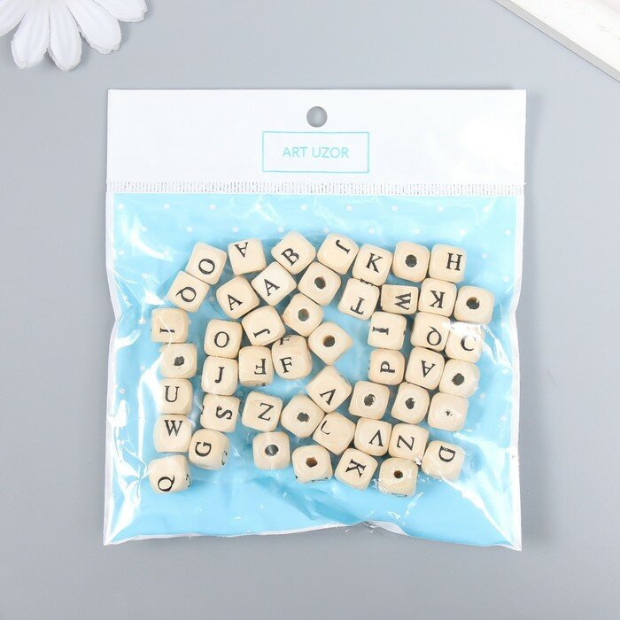 Купить Набор бусин для творчества дерево "Английский алфавит" (набор50 шт) 1х1х1 см 4114370