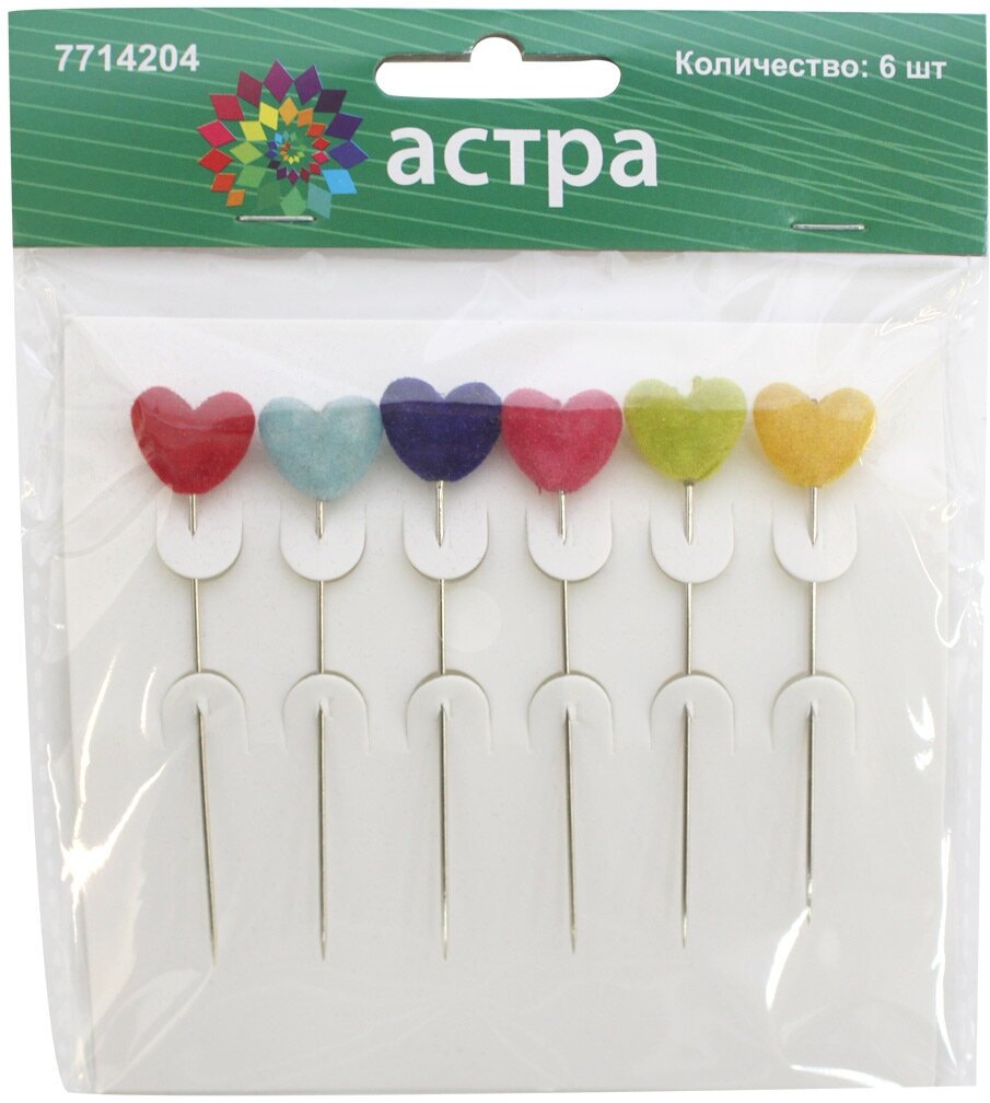 Булавки декоративные с цветными сердечками, Astra&Craft, H17-L1378, 6 шт интересное: