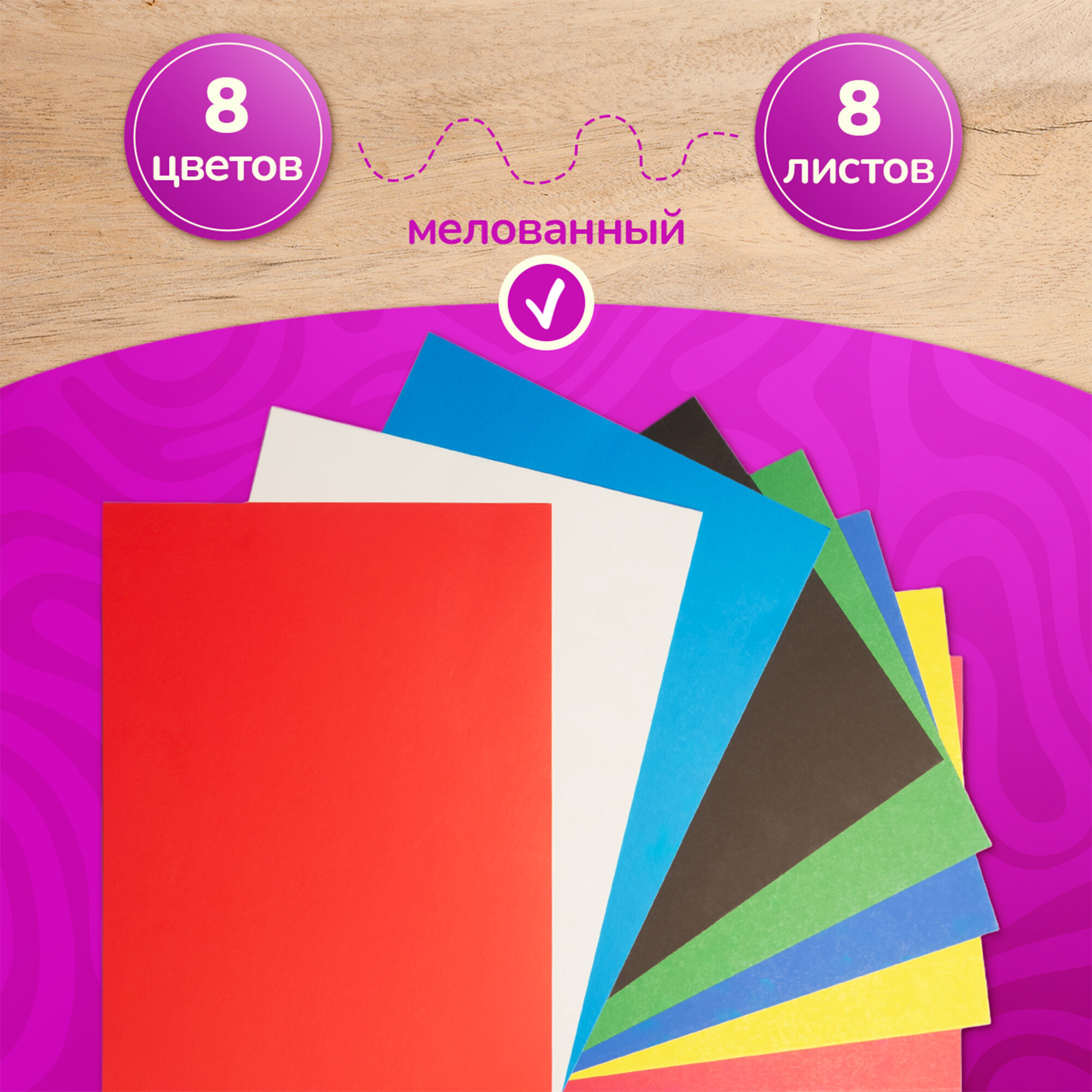 Купить Картон цветной А4 8 листов, 8 цветов двухсторонний мелованный для школы и творчества