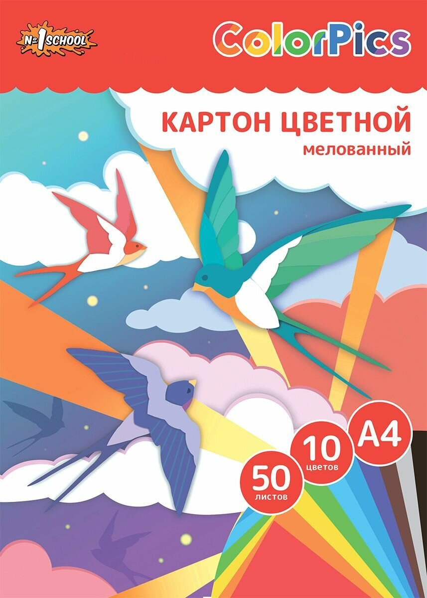 Картон цветной А4 Комус Класс Colorpics, 50 листов, 10 цветов, мелованный , односторонний интересное: