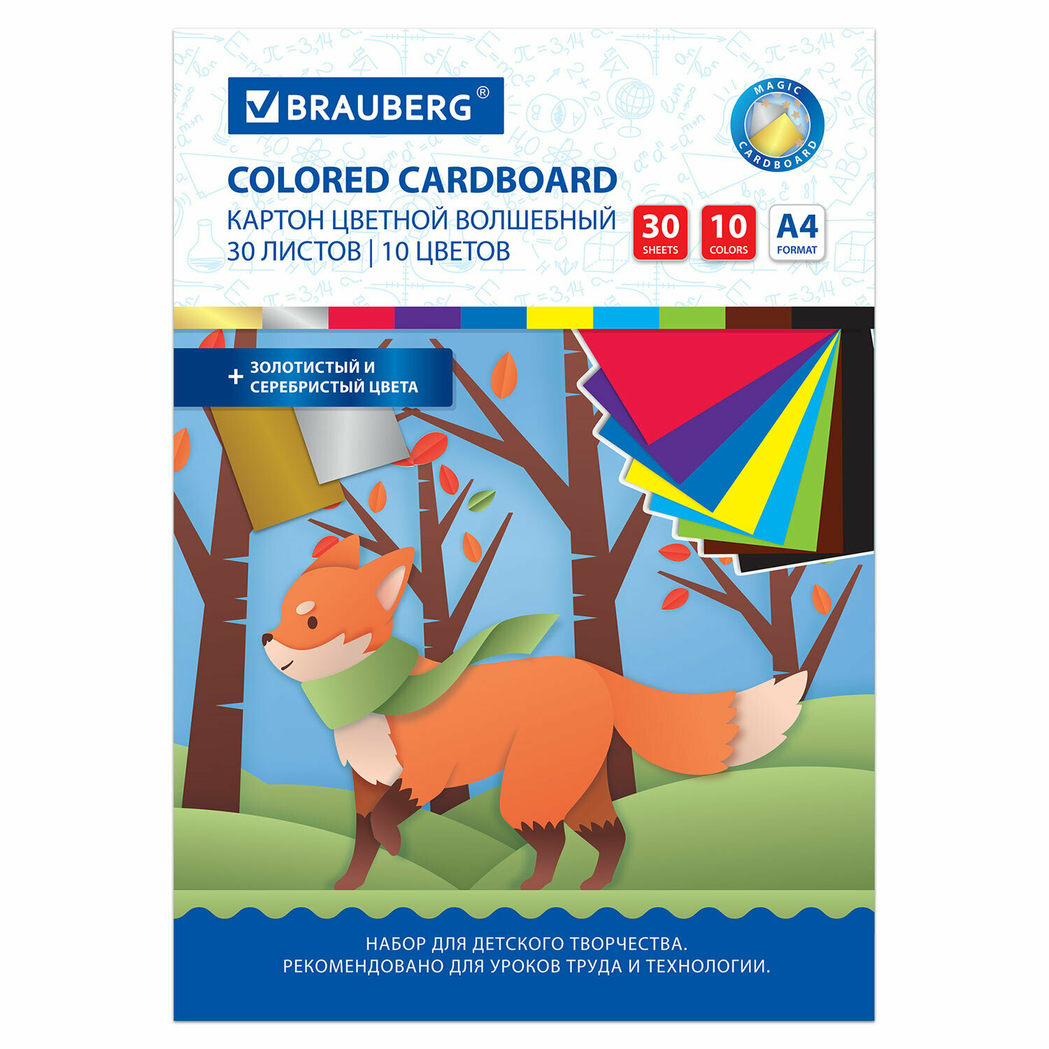 Цветной картон для школы набор А4 матовый, 30 листов 10 цветов, канцелярия для школьников, для творчества, скрапбукинга, Brauberg Лисенок, 115641 интересное: